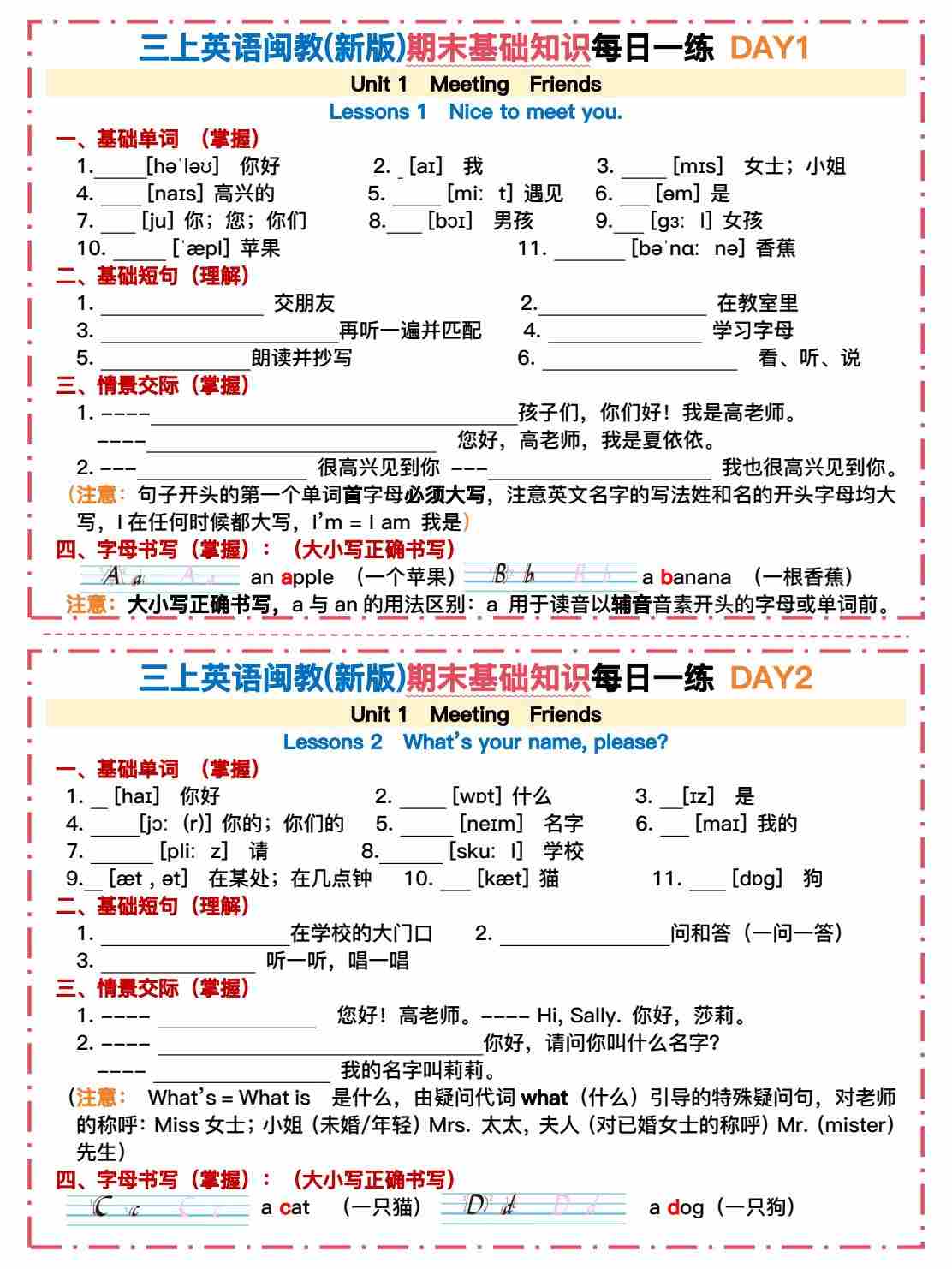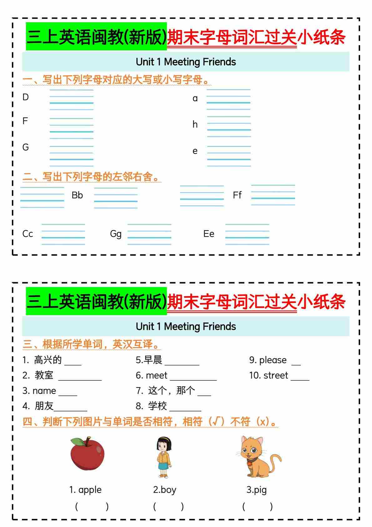 三上英语闽教(新版)期末字母词汇过关小纸条【空白】