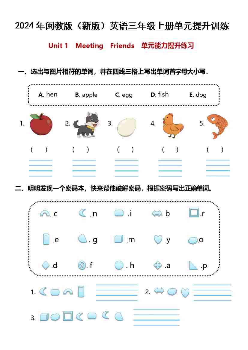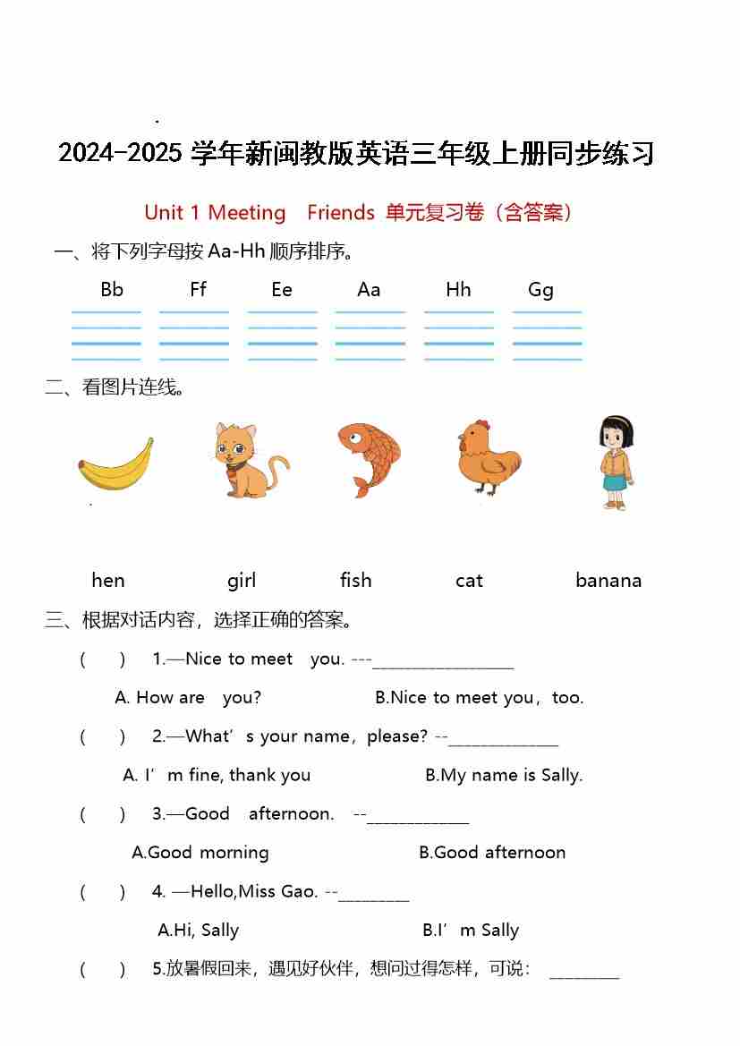 Unit1 Meeting Friends(单元测试)-2024-2025学年新闽教版英语三年级上册