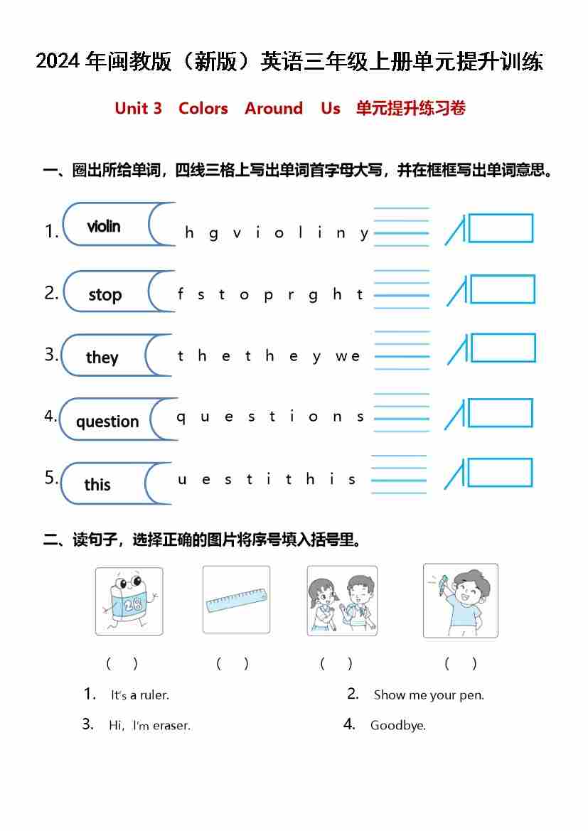 Unit 3 Colors Around Us (单元测试)2024学年新闽教版英语三年级上册
