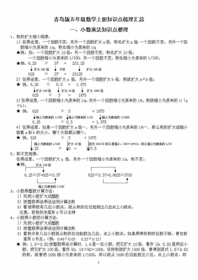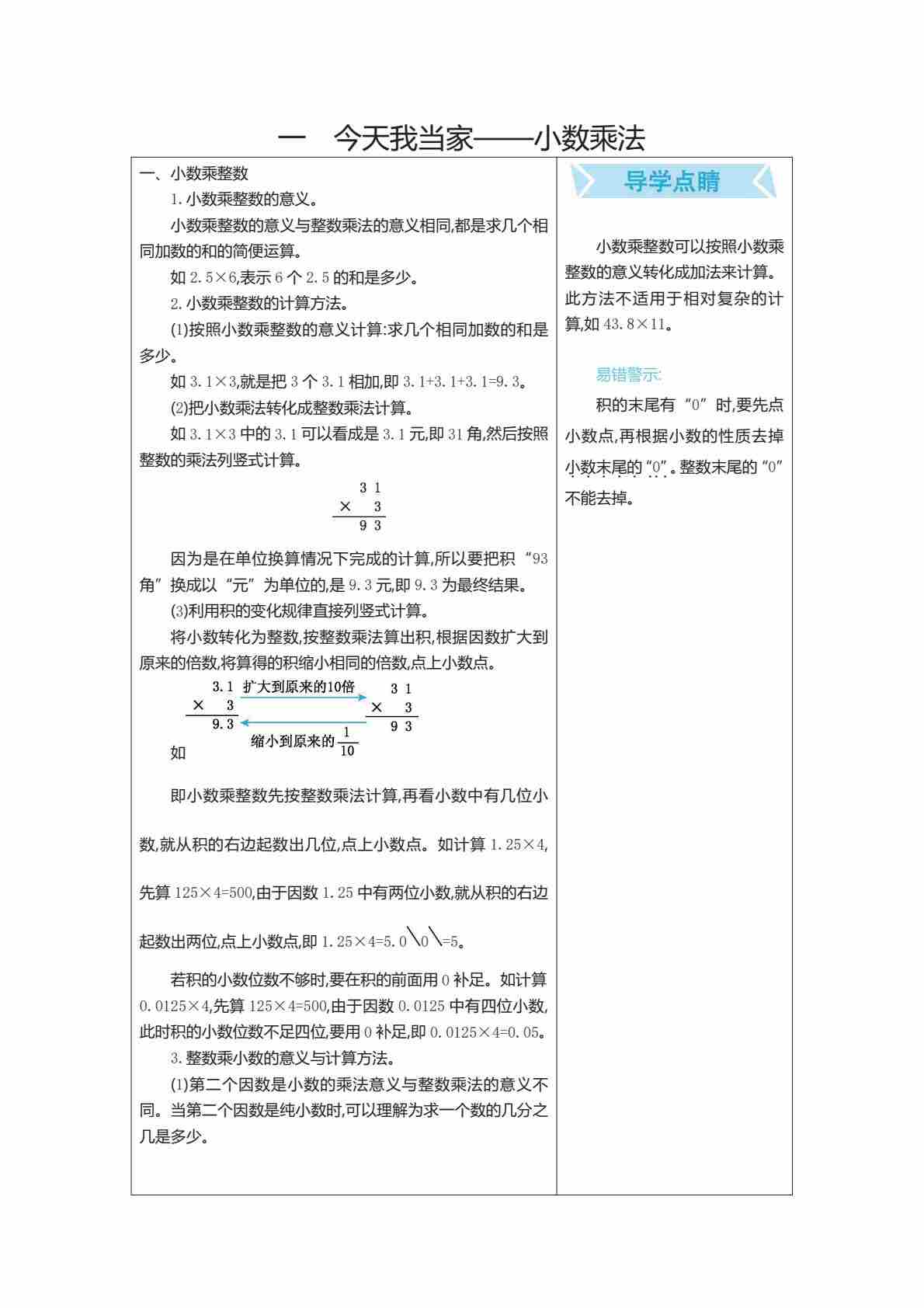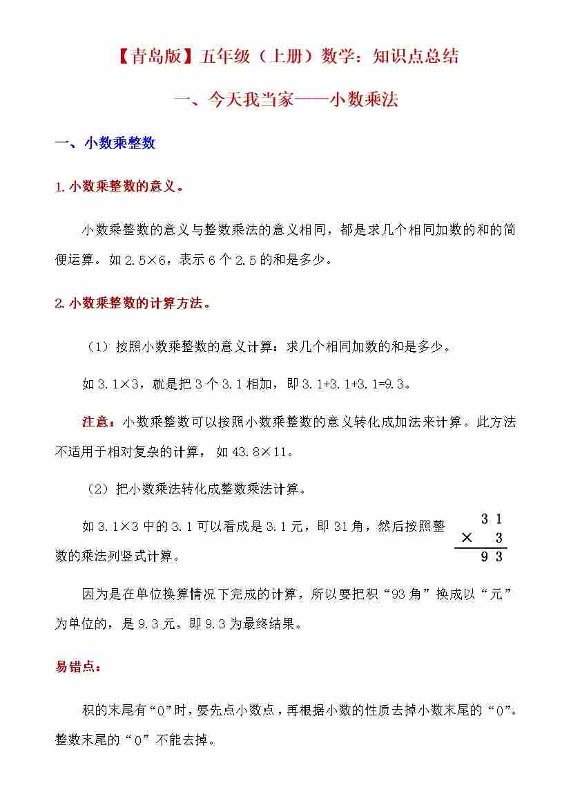 五年级(上)数学第一单元小数乘法常考易错题《青岛版63》