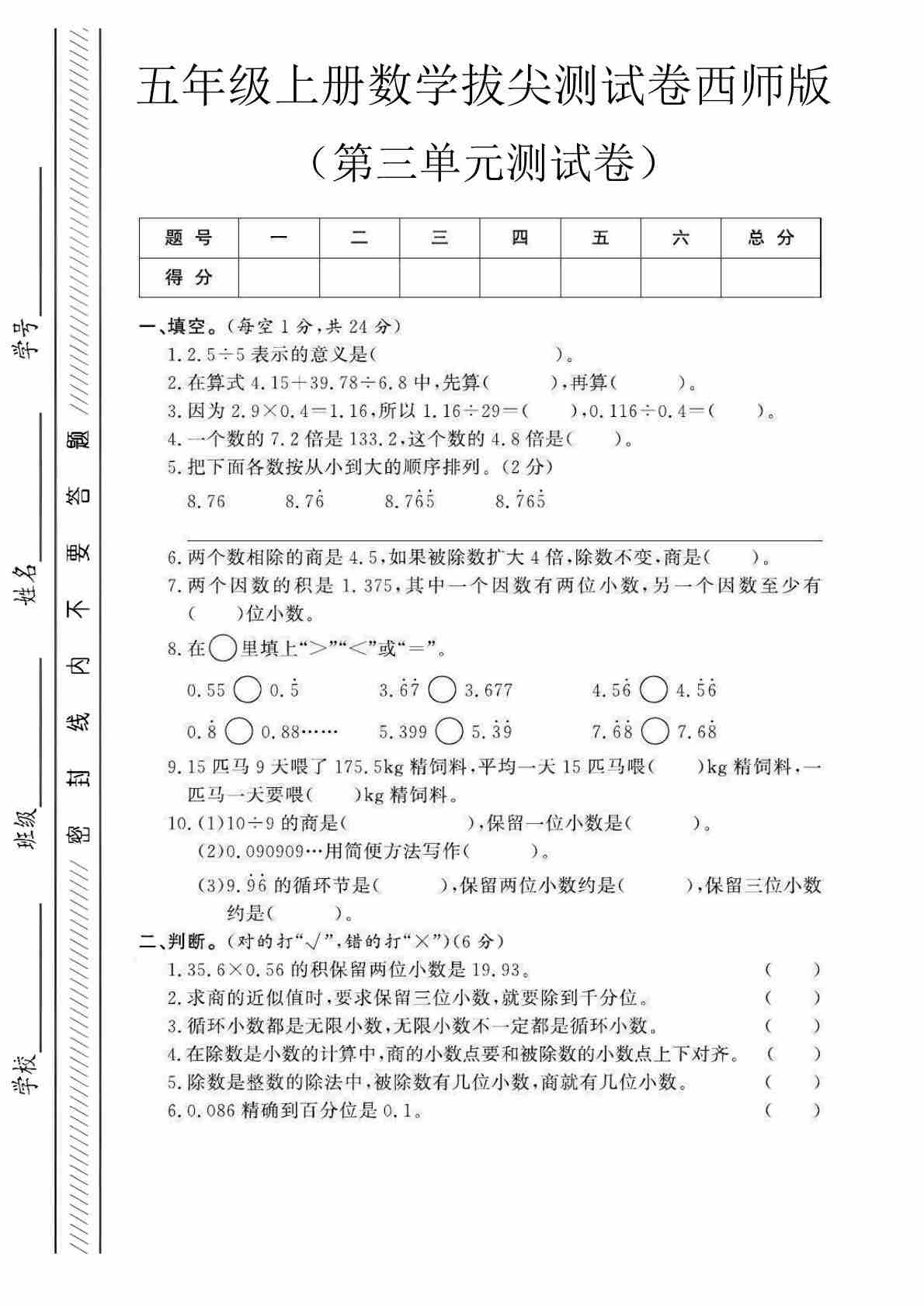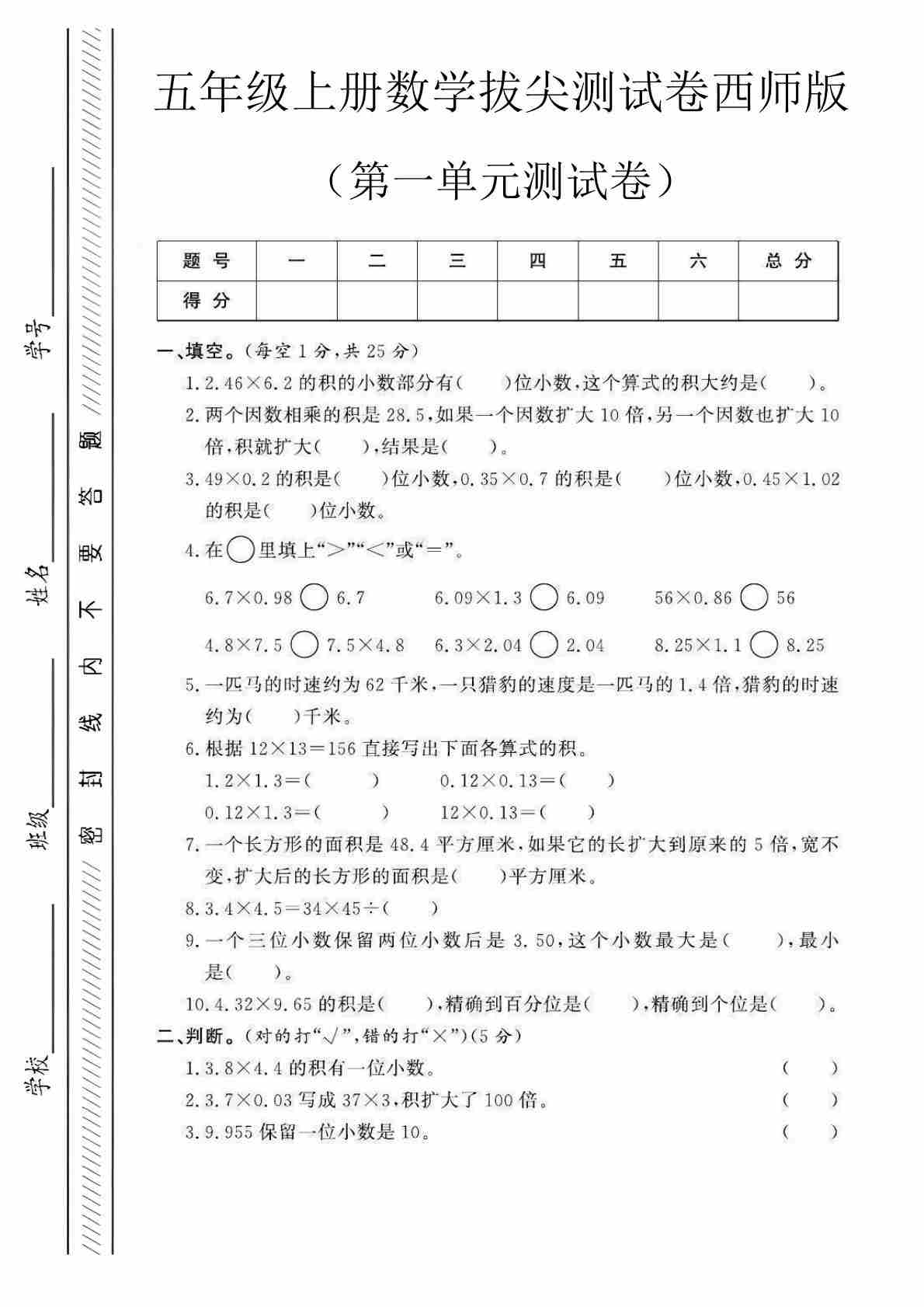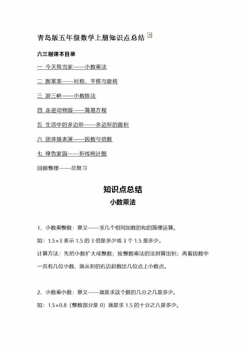 五年级(上)数学第一单元小数乘法常考易错题《青岛版63》