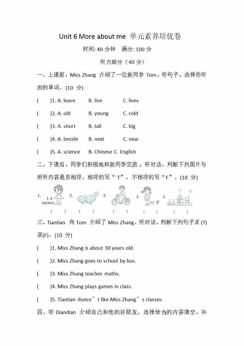 Unit 6 More about me 单元素养培优卷(含答案,含听力原文,无听力音频)
