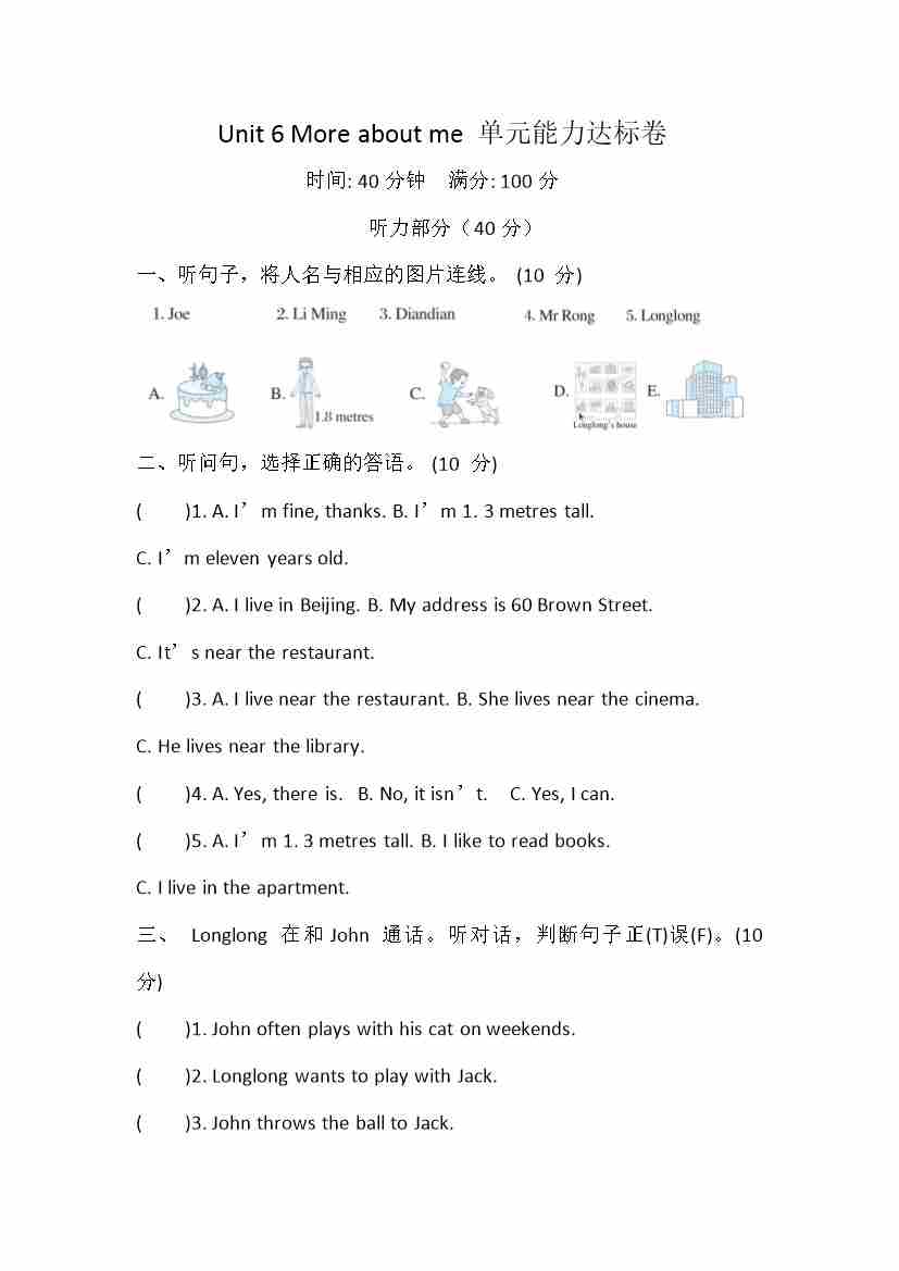 Unit 6 More about me 单元能力达标卷(含答案,含听力原文,无听力音频)