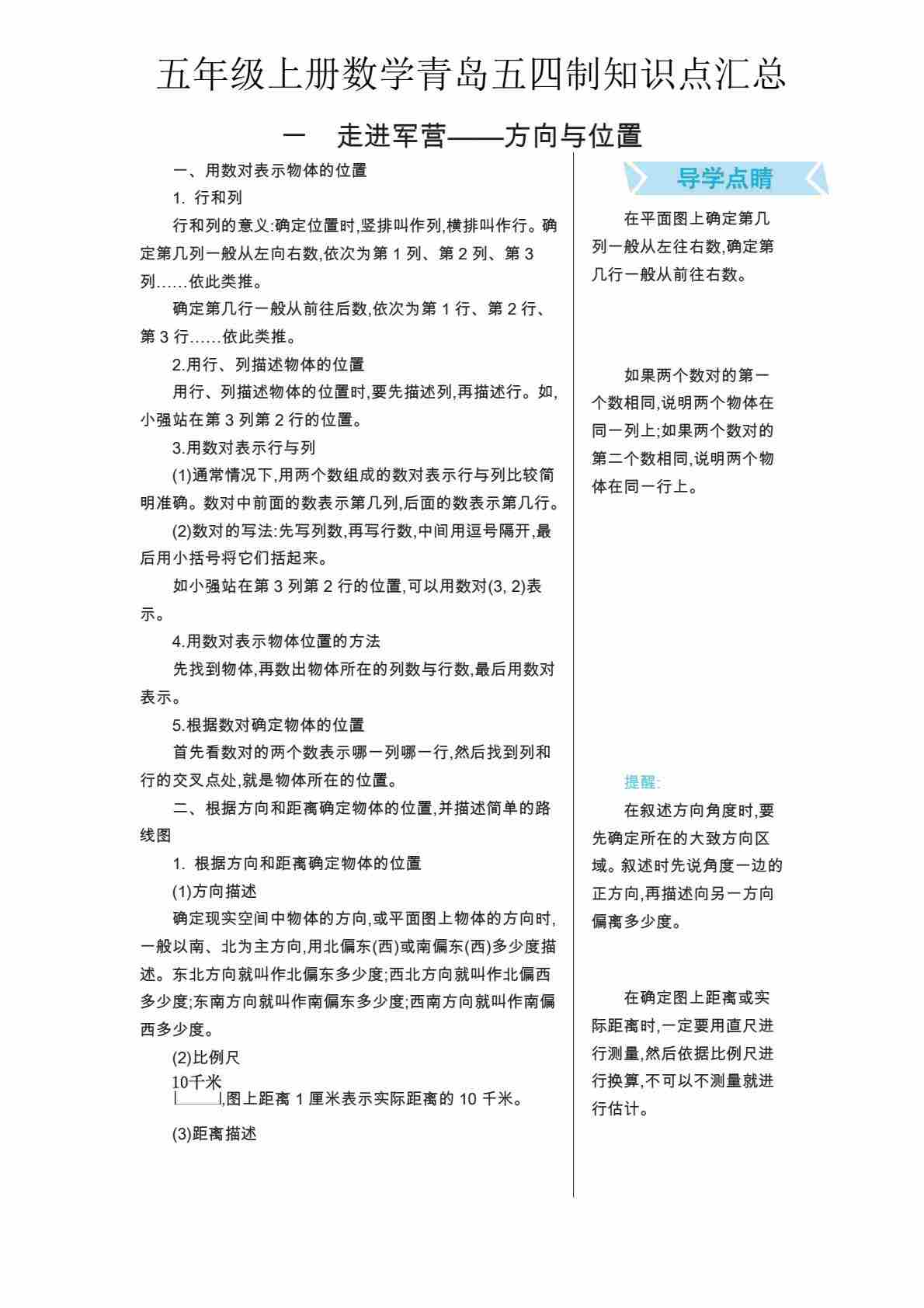 五上青岛五四制数学【知识点汇总】