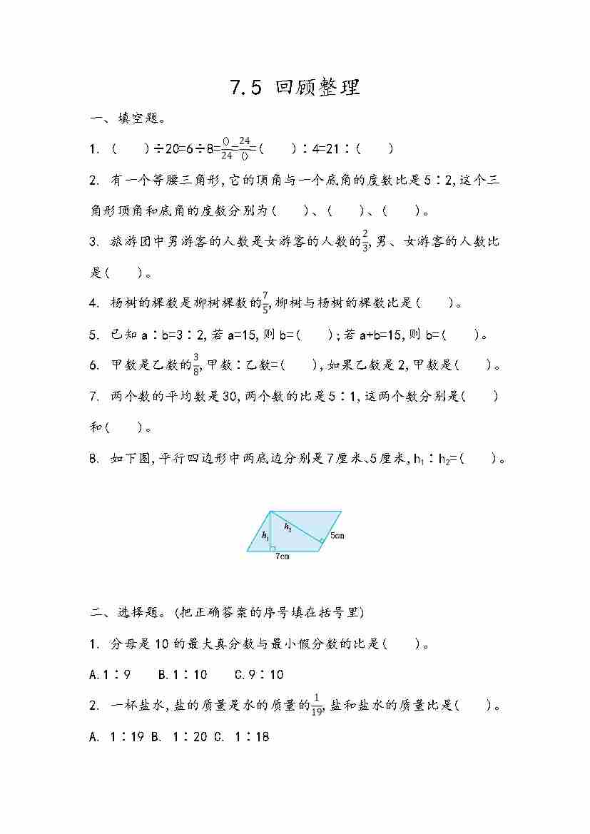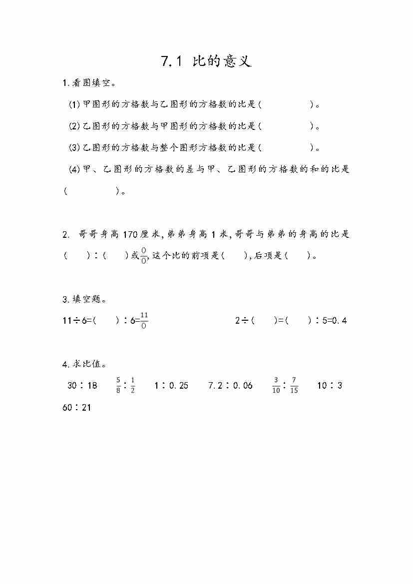 五(上)54制青岛版数学七单元课时7.1 比的意义