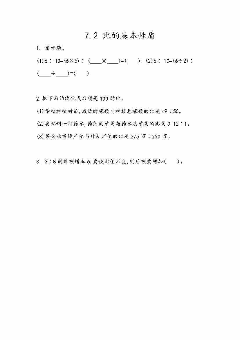 五(上)54制青岛版数学七单元课时7.2 比的基本性质