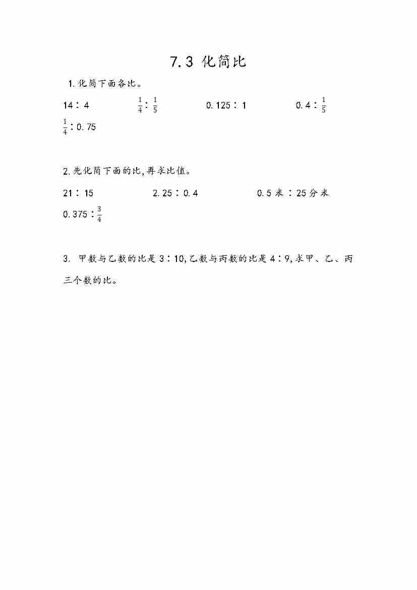 五(上)54制青岛版数学七单元课时7.3 化简比