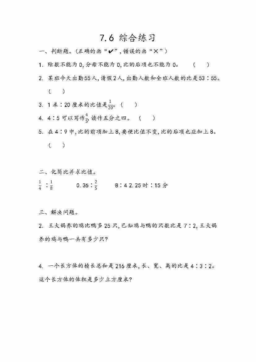 五(上)54制青岛版数学七单元课时7.6 综合练习