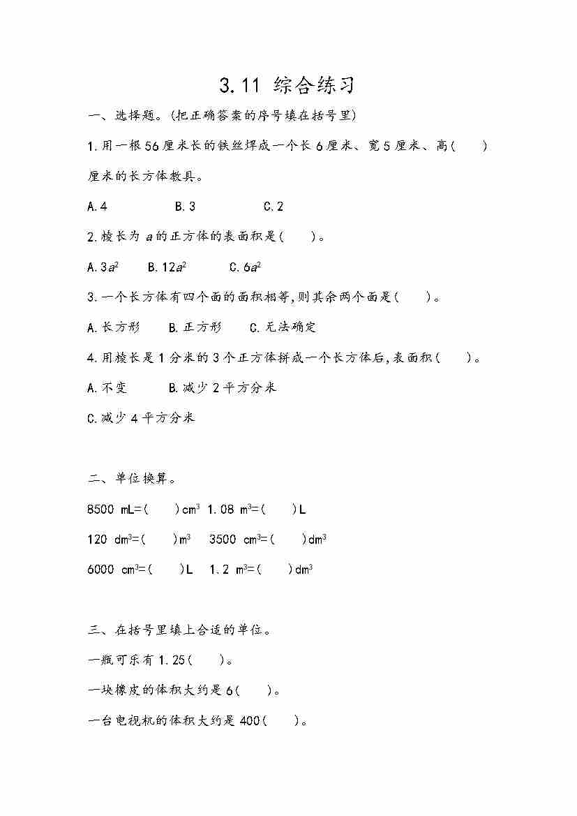 五(上)54制青岛版数学三单元课时3.11 综合练习
