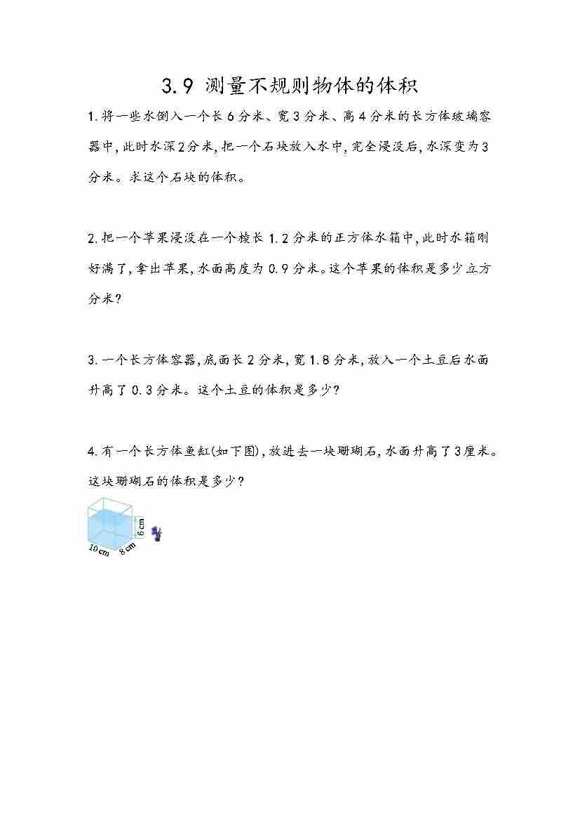 五(上)54制青岛版数学三单元课时3.9 测量不规则物体的体积