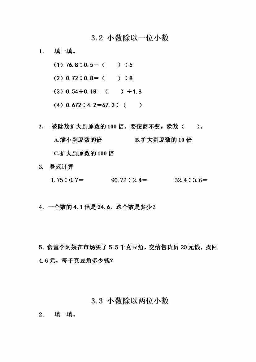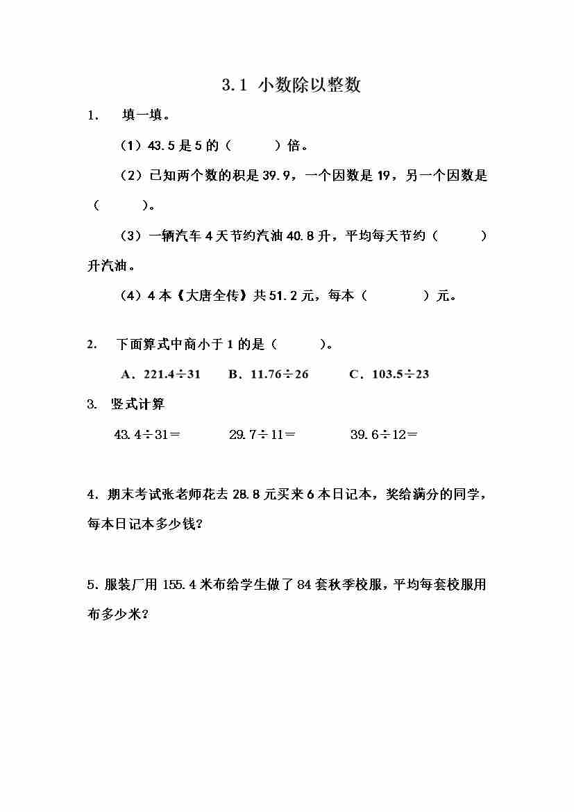 五(上)冀教版数学三单元课时.1