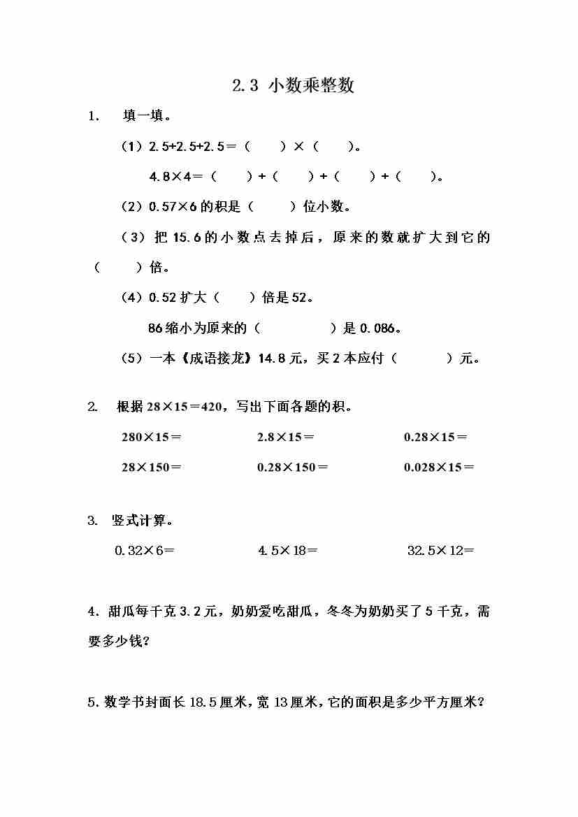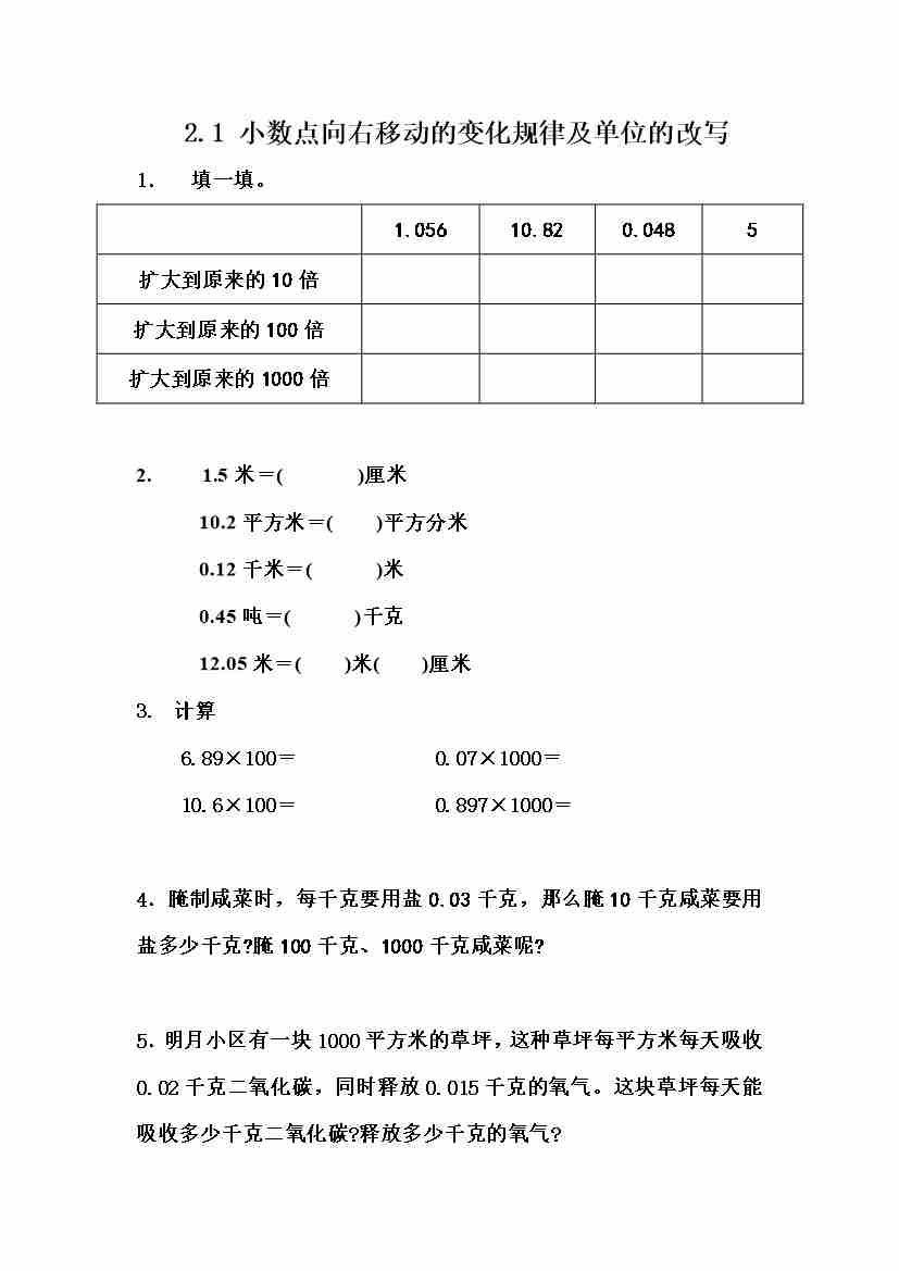 五(上)冀教版数学一单元课时.1