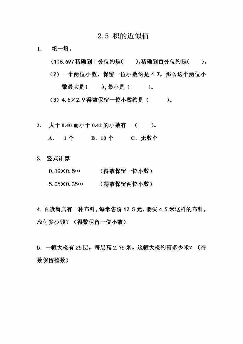 五(上)冀教版数学一单元课时.2