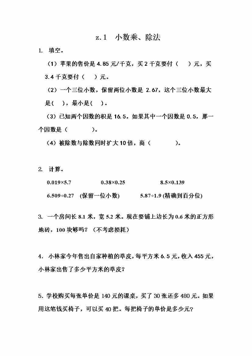 五(上)冀教版数学课时.整理与评价1