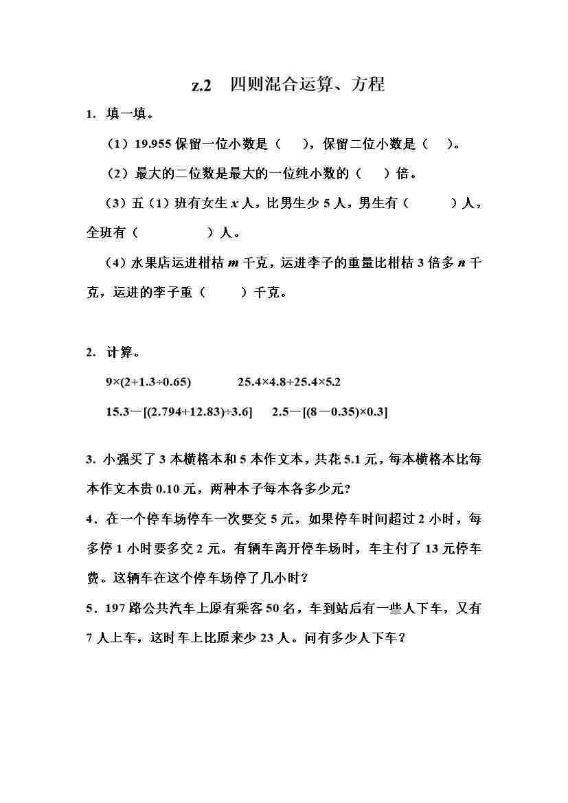 五(上)冀教版数学课时.整理与评价2