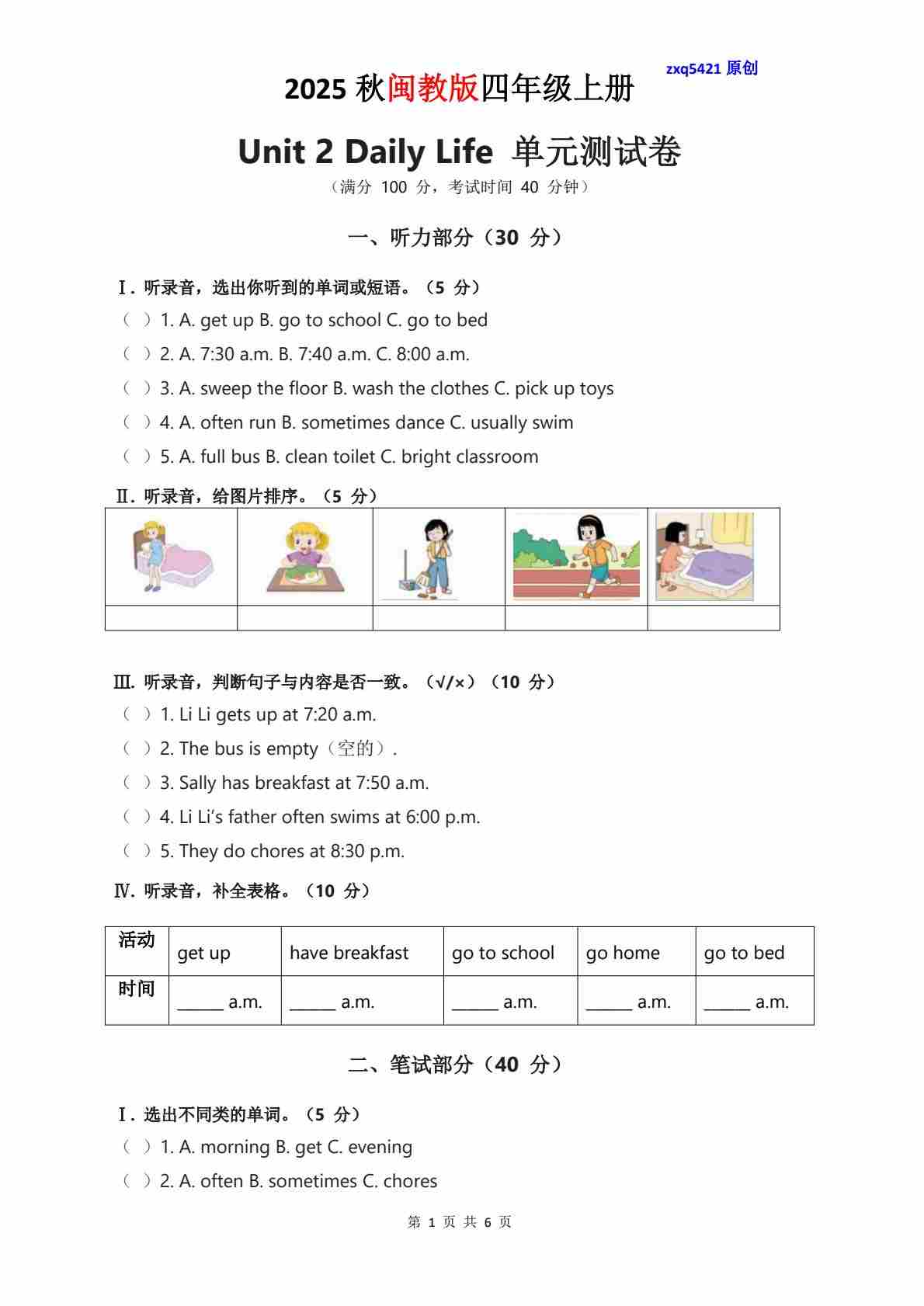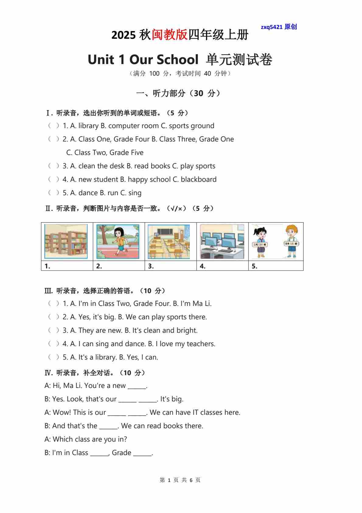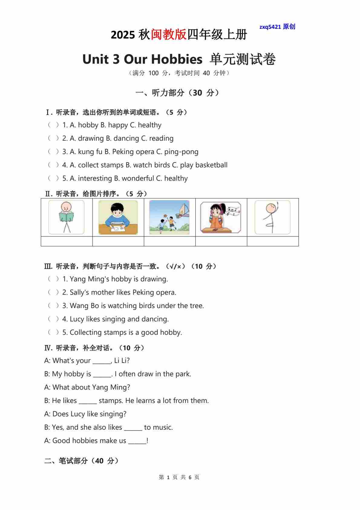 Unit 1 单元测试卷-提供听力材料