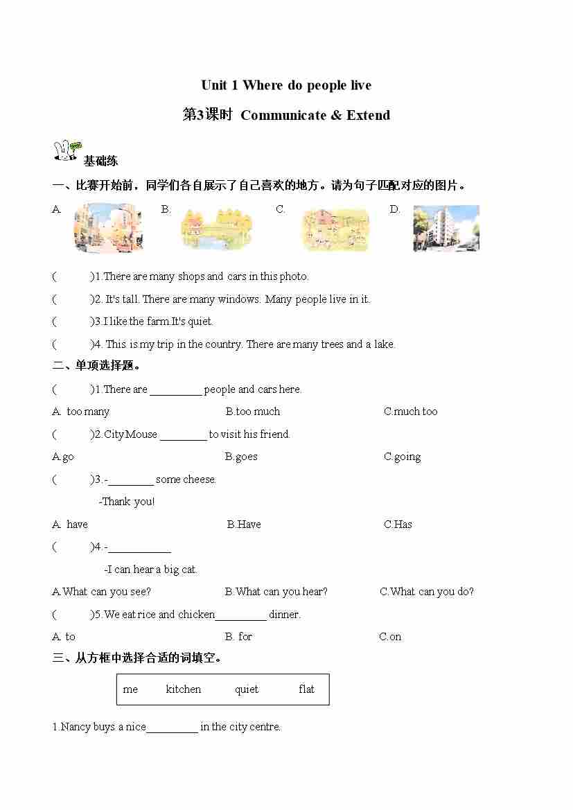 Unit 1 第3课时 Communicate&Extend(分层作业)英语沪教版四年级上册(新教材)