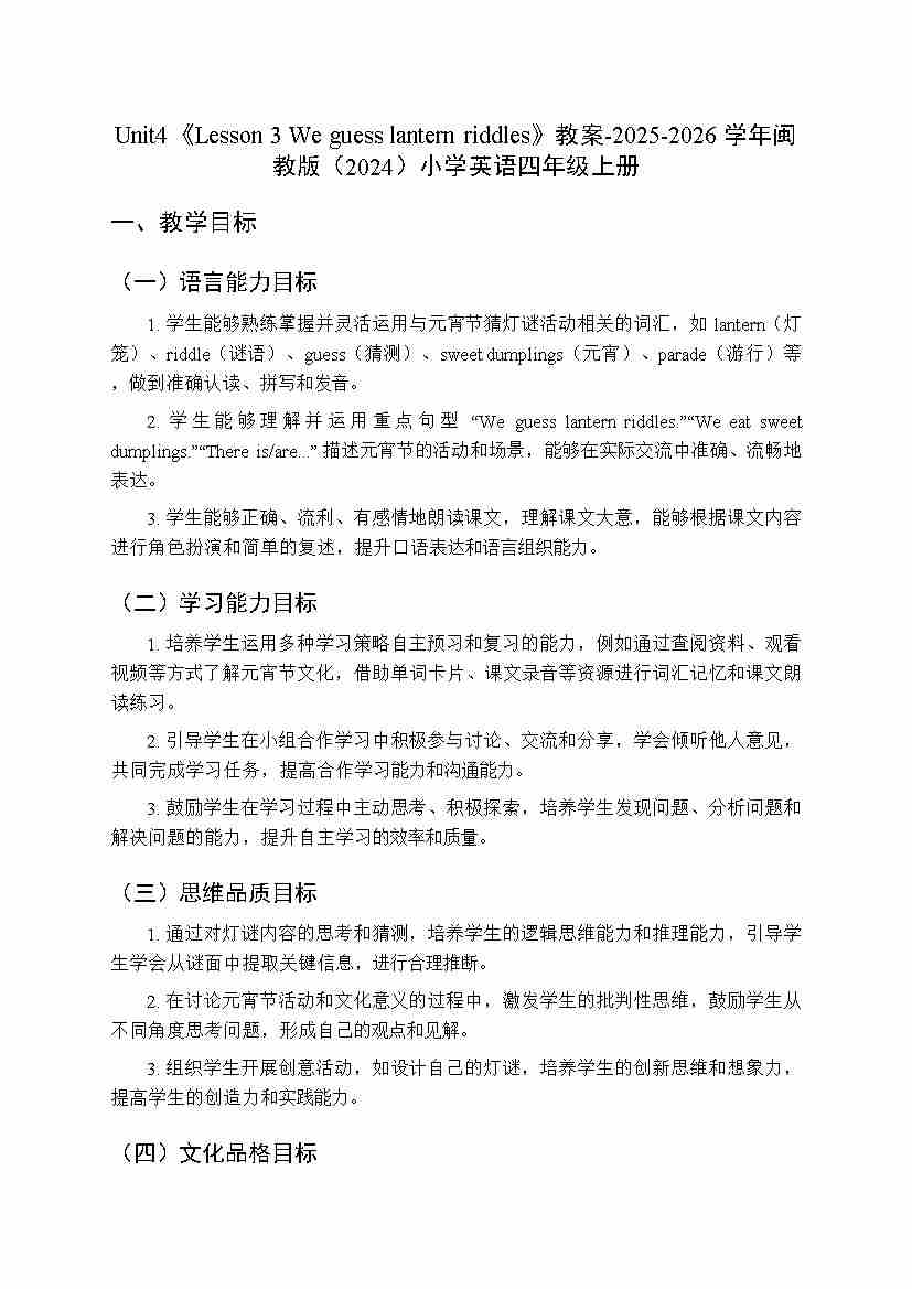 Unit 4 Lesson 3 We guess lantern riddles(教案)