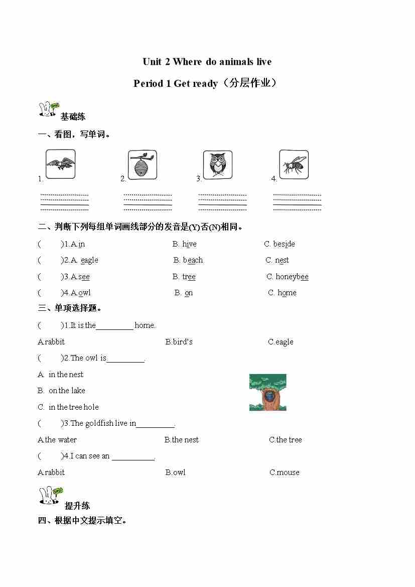 Unit 2 第1课时 Get ready(分层作业)英语沪教版四年级上册(新教材)