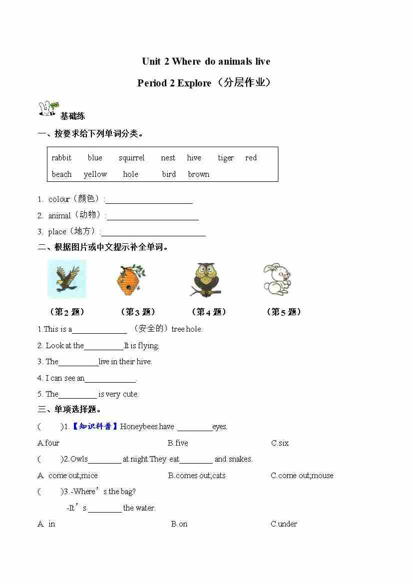Unit 3 第2课时 Explore(分层作业)英语沪教版四年级上册(新教材)