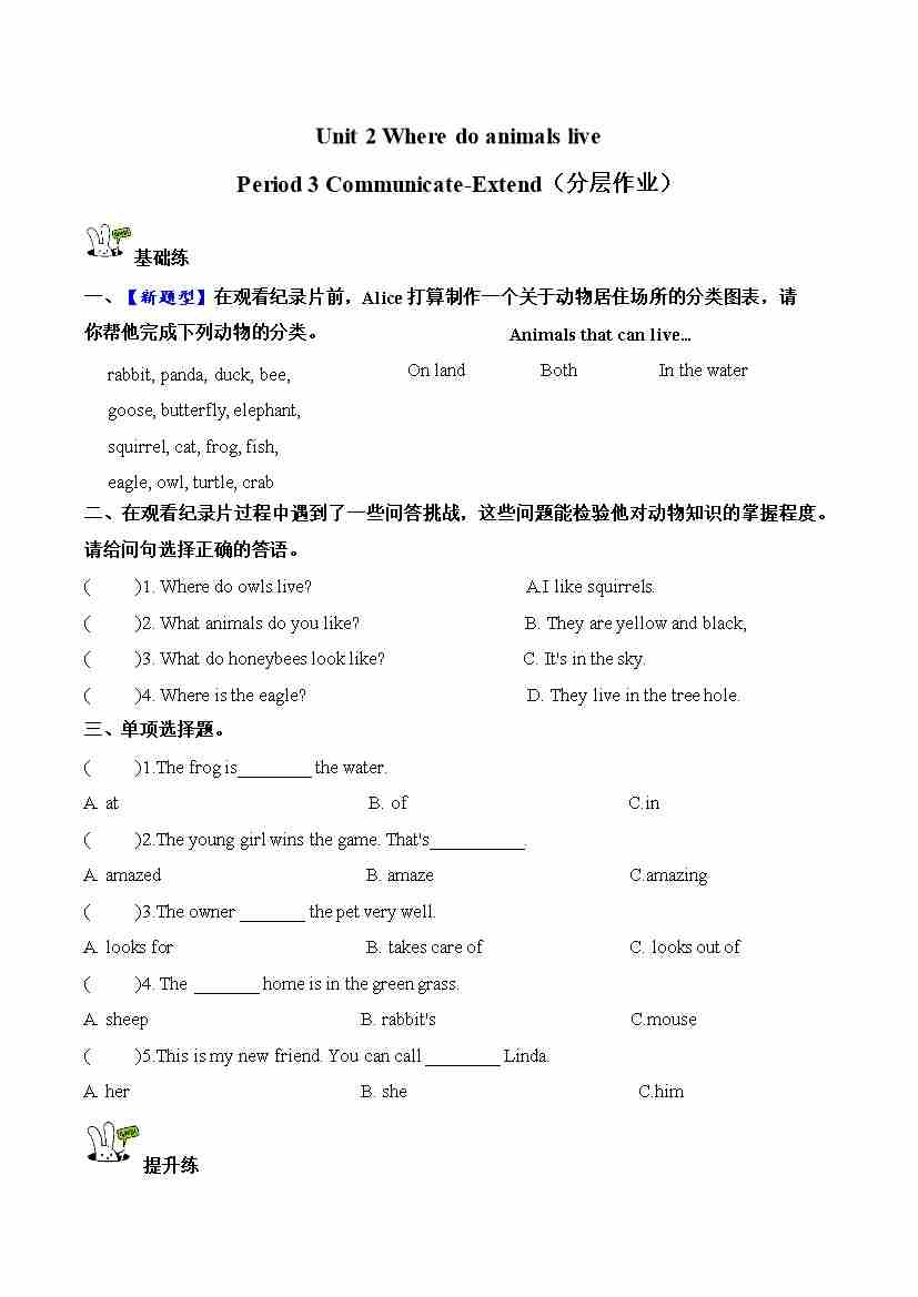 Unit 2 第3课时 Communicate&Extend(分层作业)英语沪教版四年级上册(新教材)