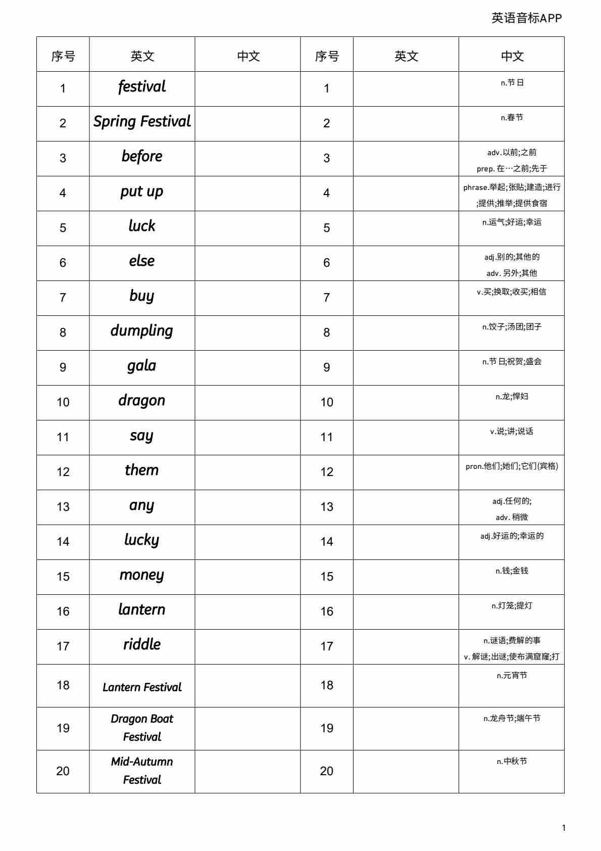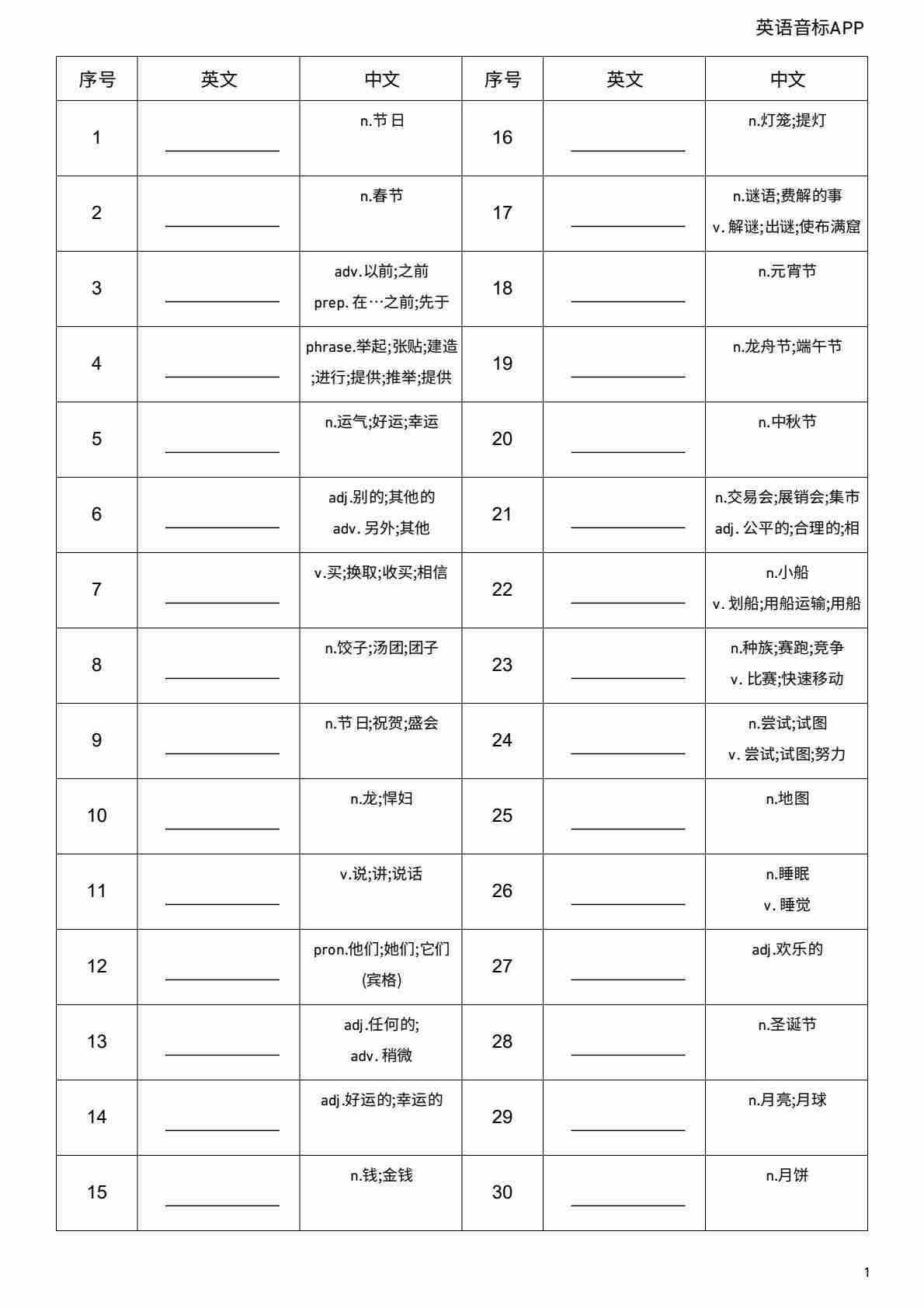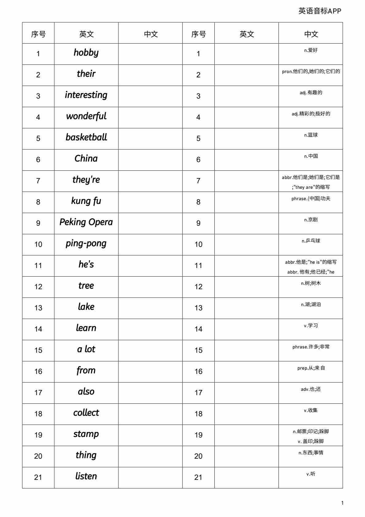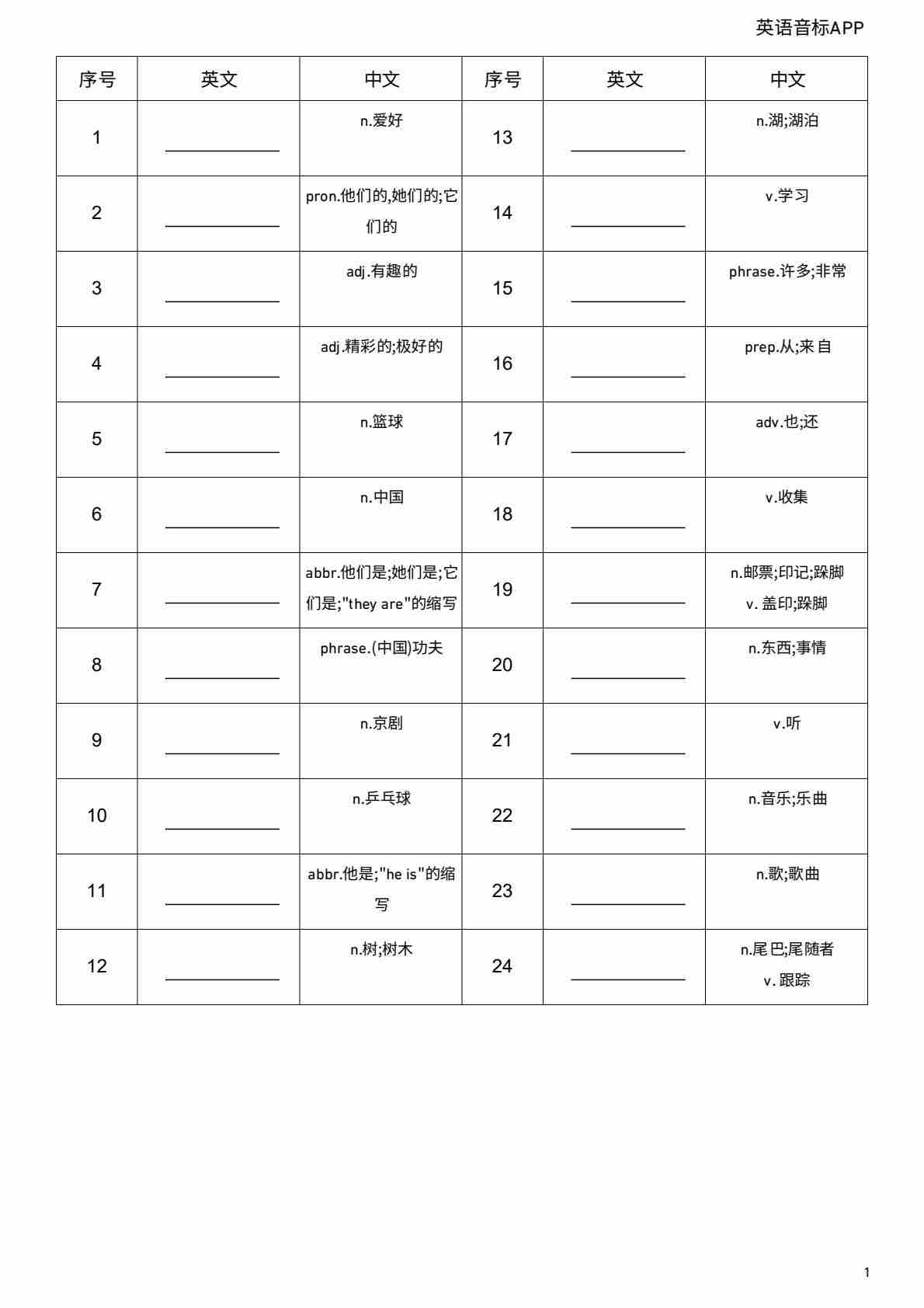 Unit 3 英汉互译小纸条