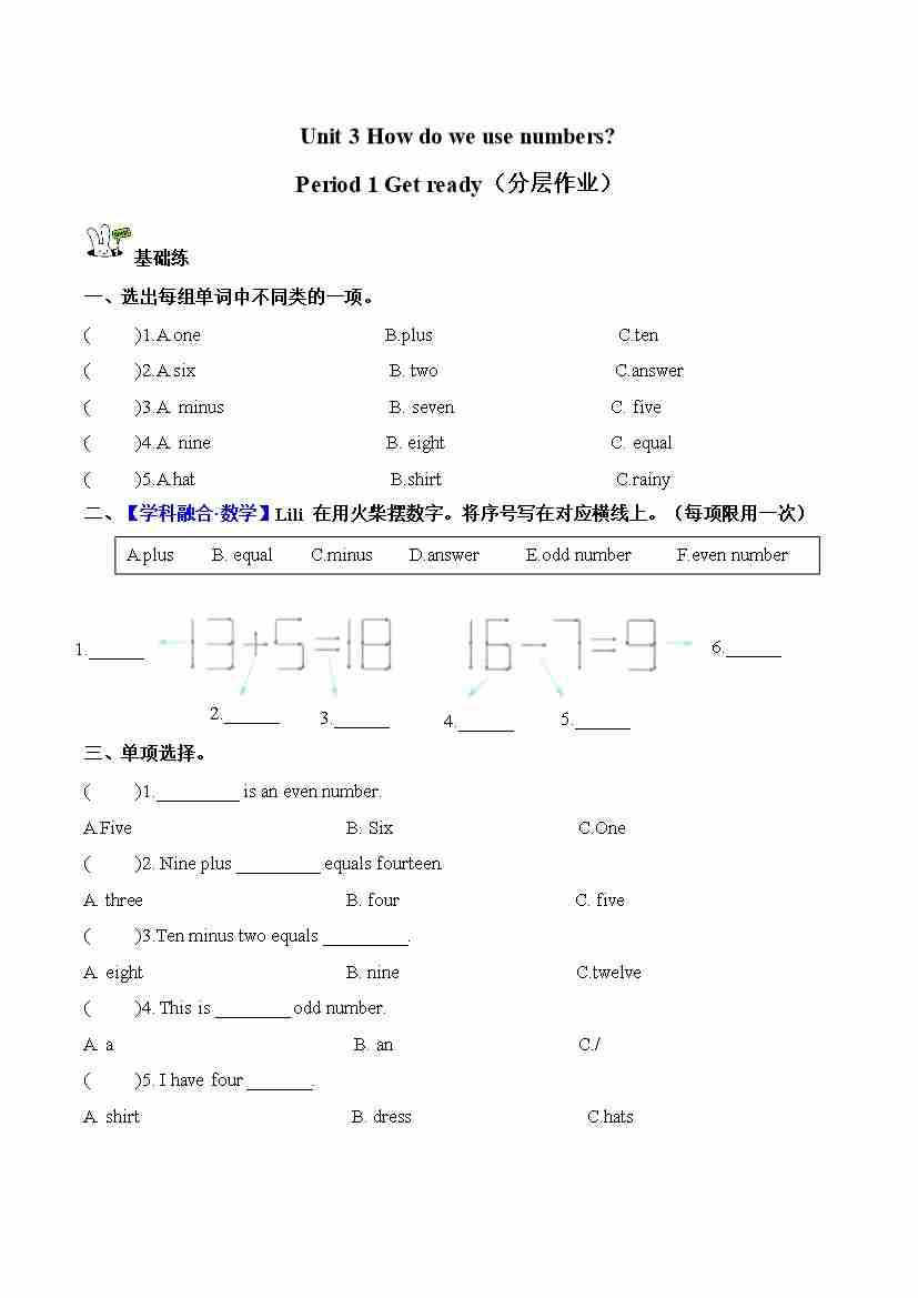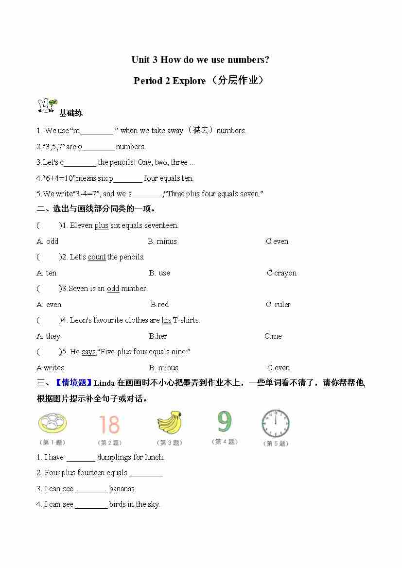 Unit 3 第1课时 Get ready(分层作业)英语沪教版四年级上册(新教材)