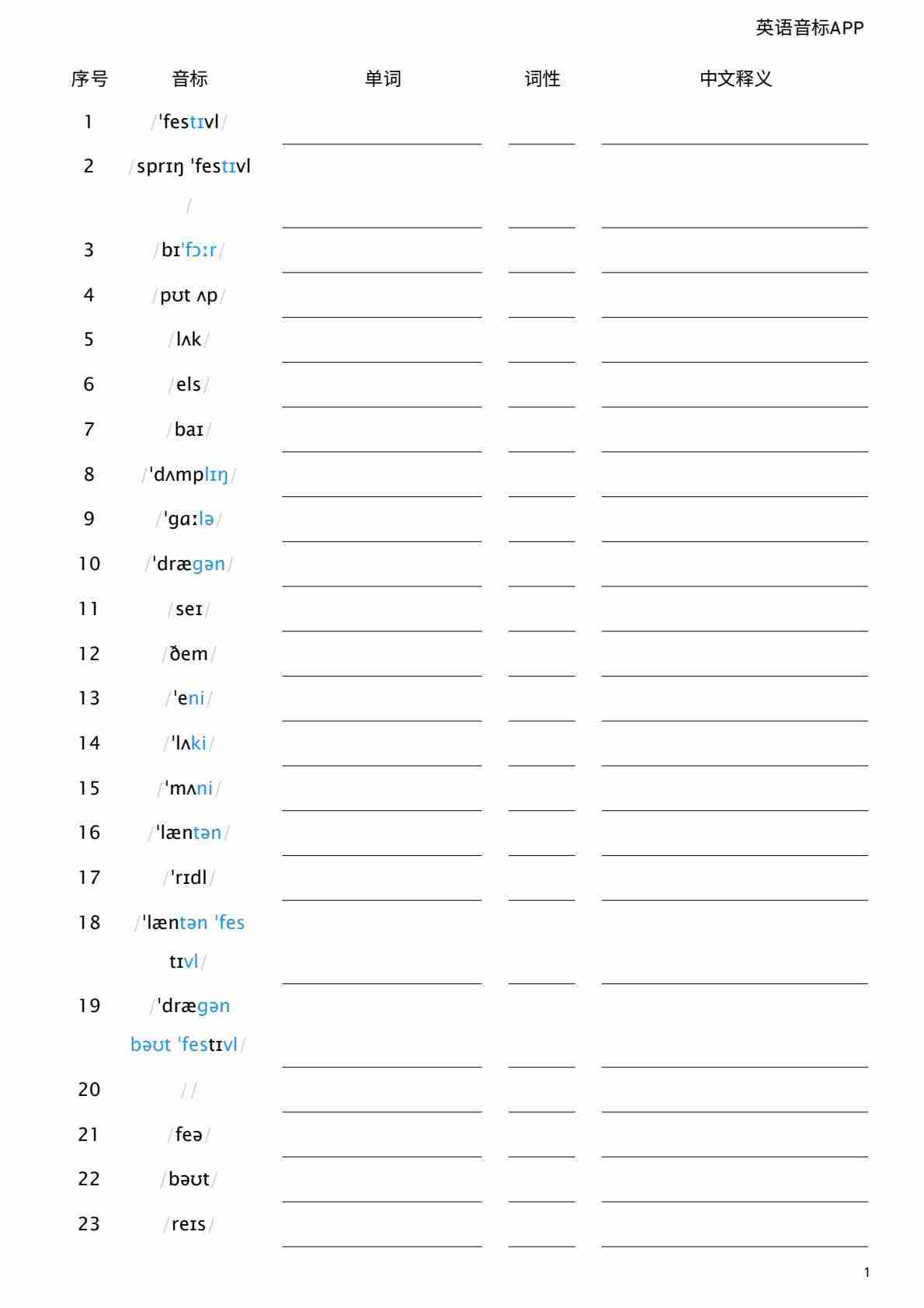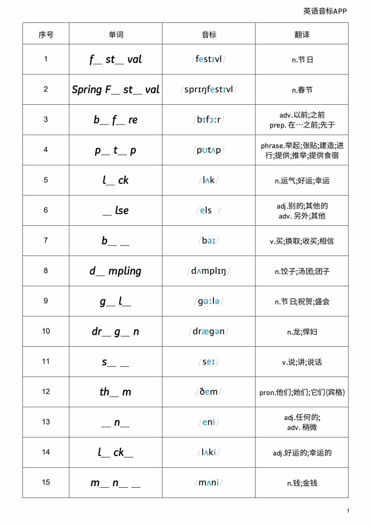 Unit 4 看音标默单词