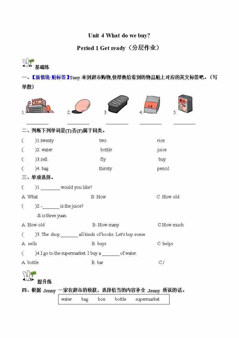 Unit 4 第1课时 Get ready(分层作业)英语沪教版四年级上册(新教材)
