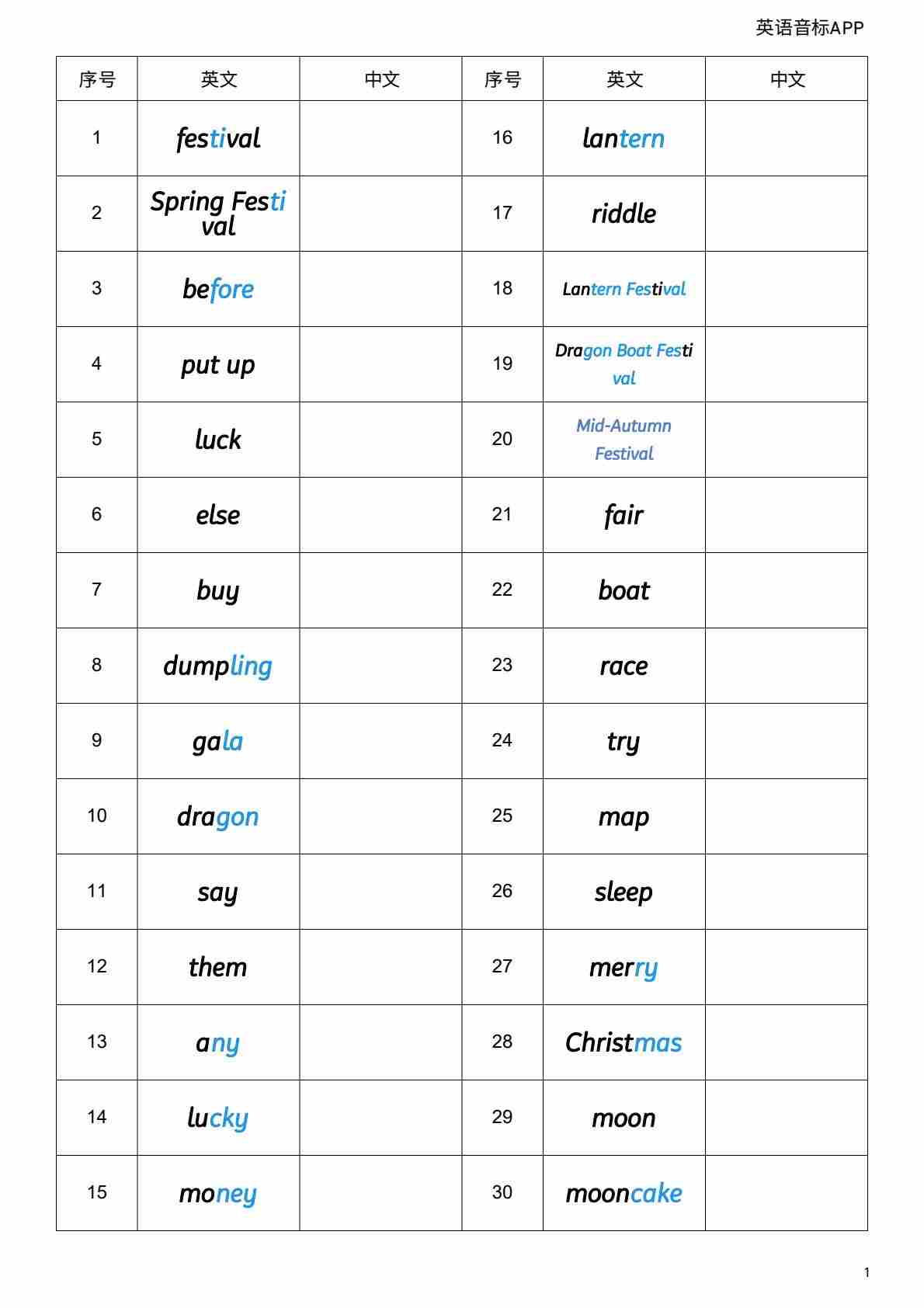Unit 4 单词挖空