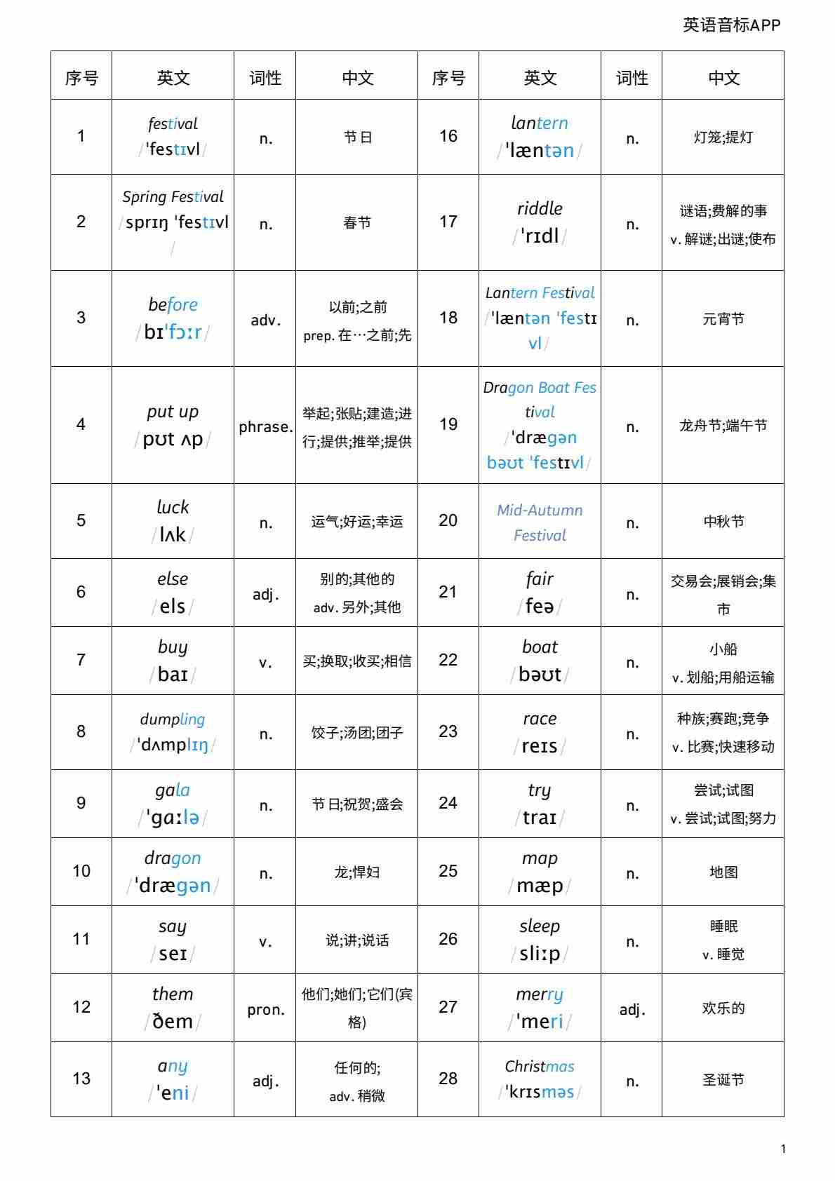 单词音频类