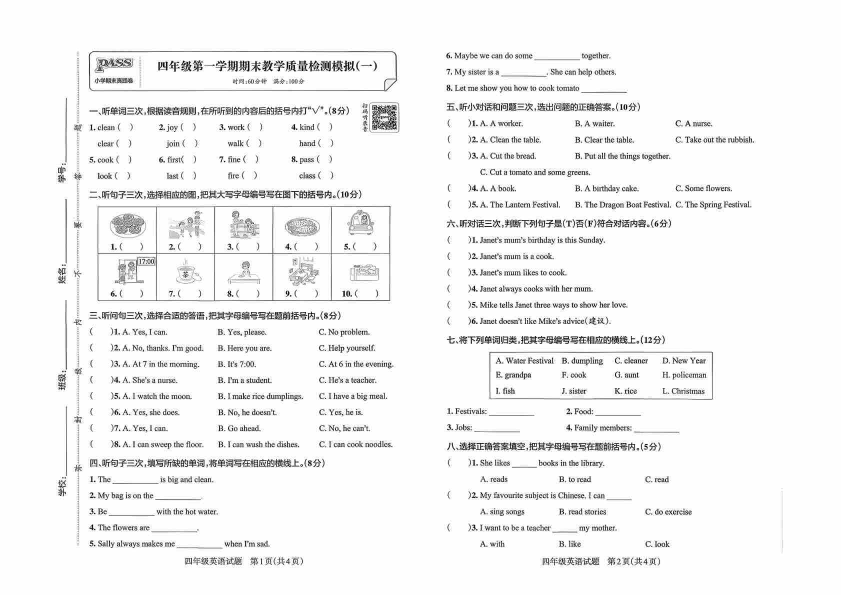 【四上英语】(教科版)《AB卷》英语测试2025 期末复习系列(1)