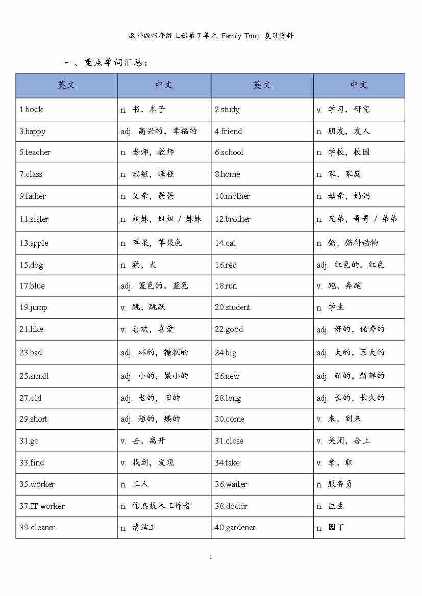 Unit7 Family Time (知识清单)-2025-2026学年教科版(2024)英语四年级上册