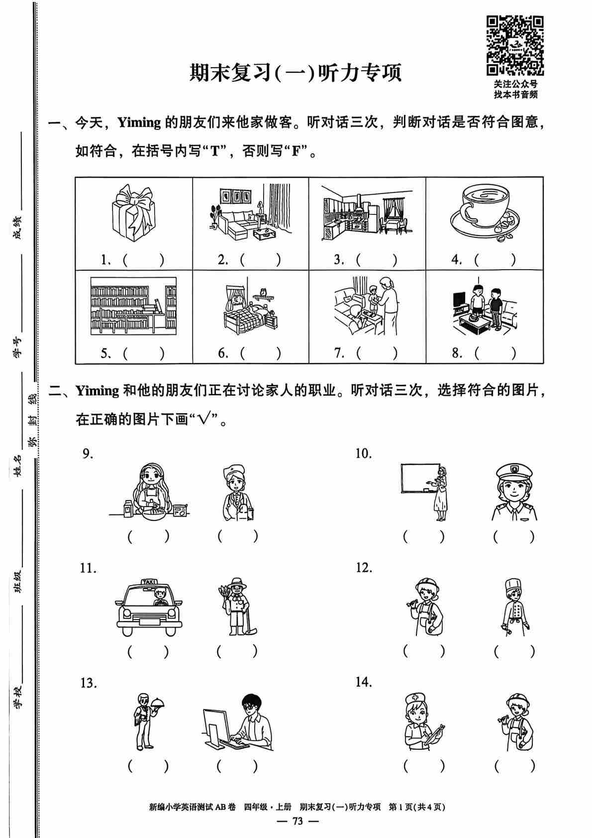 【四上英语】(教科版)《AB卷》英语测试2025 听力材料+答案解析(1)