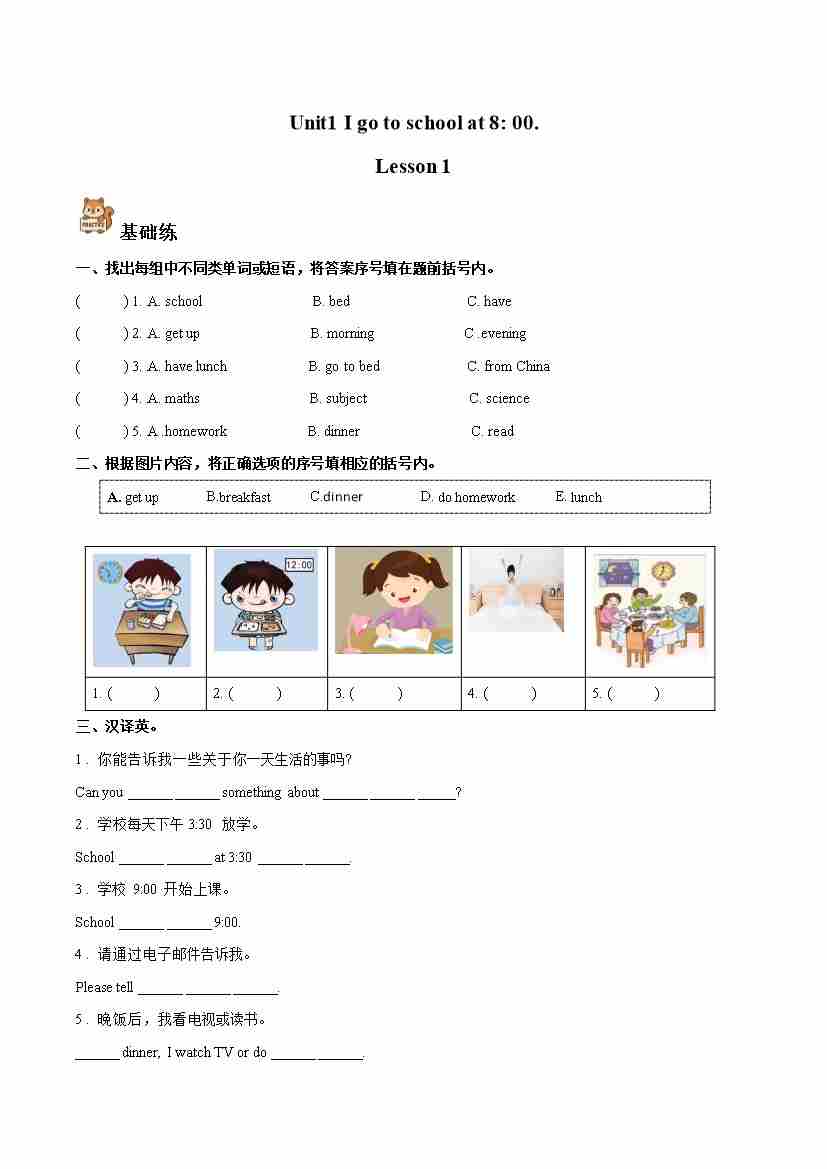 Unit 1 Lesson 1(分层作业)英语人教精通版六年级上册