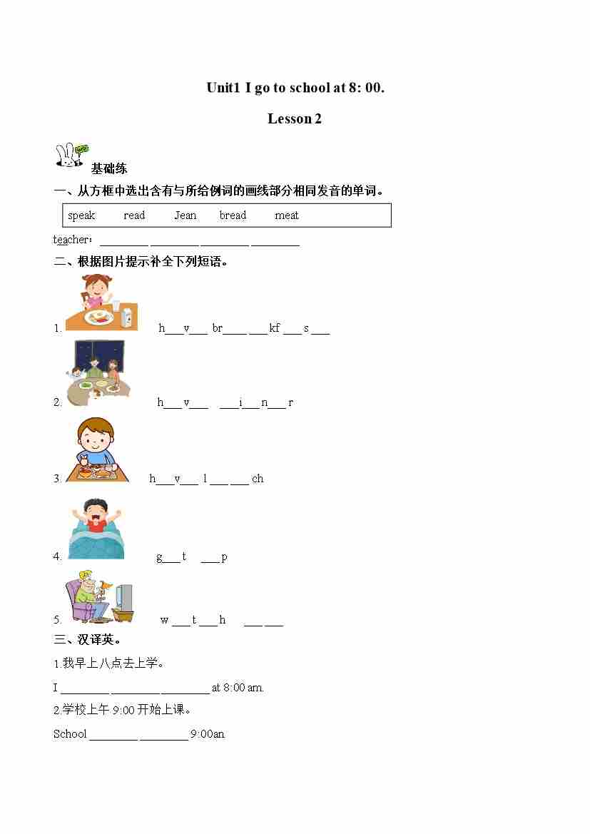 Unit 2 Lesson 8(分层作业)英语人教精通版六年级上册