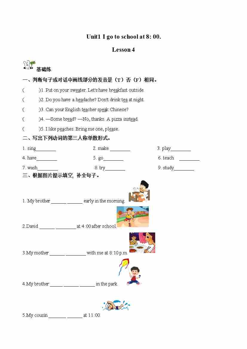 Unit 1 Lesson 4(分层作业)英语人教精通版六年级上册docx