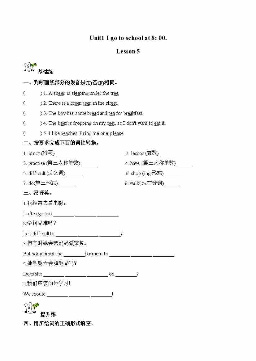 Unit 1 Lesson 5(分层作业)英语人教精通版六年级上册docx