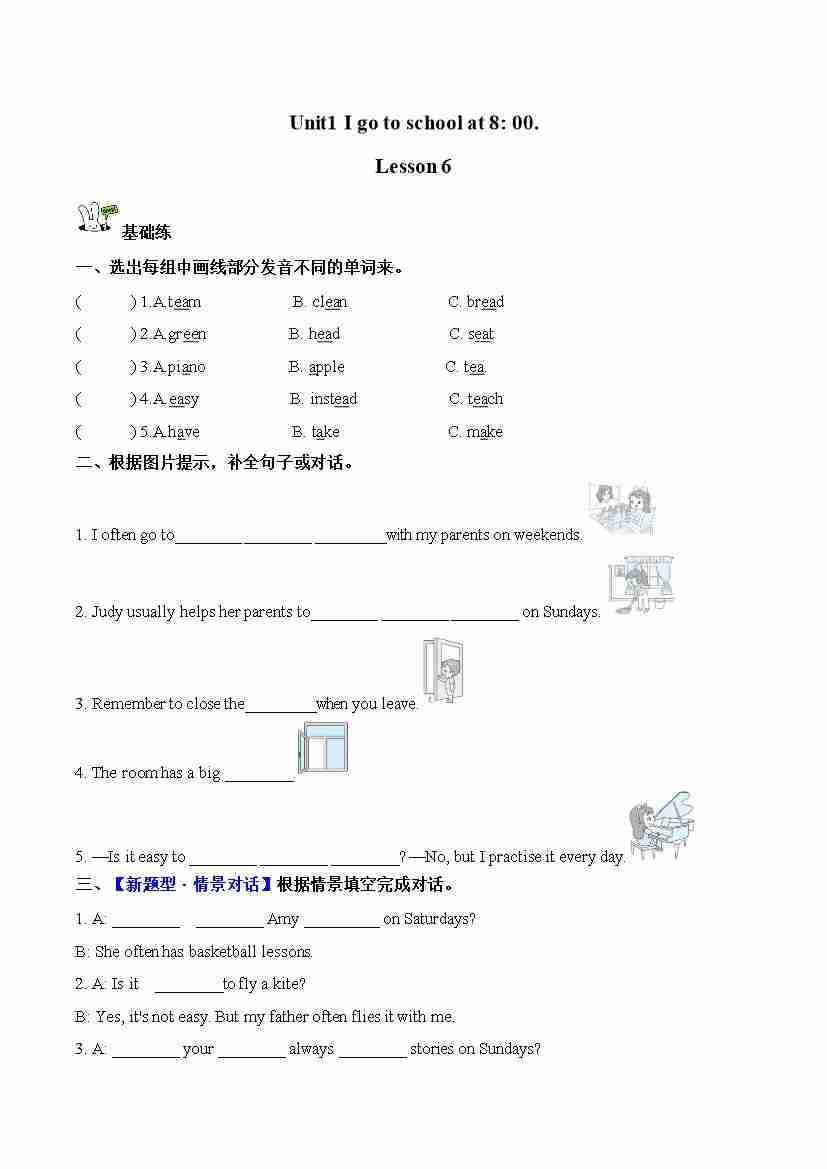 Unit 1 Lesson 6(分层作业)英语人教精通版六年级上册docx