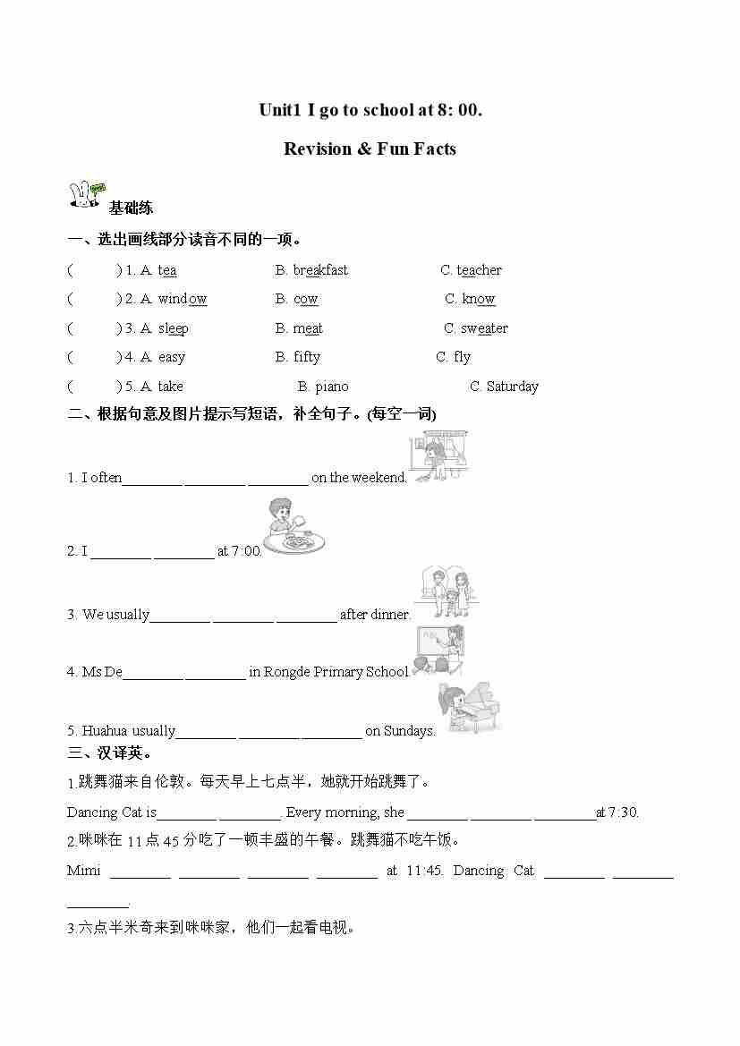 Unit 1 Revision & Fun Facts(分层作业)英语人教精通版六年级上册