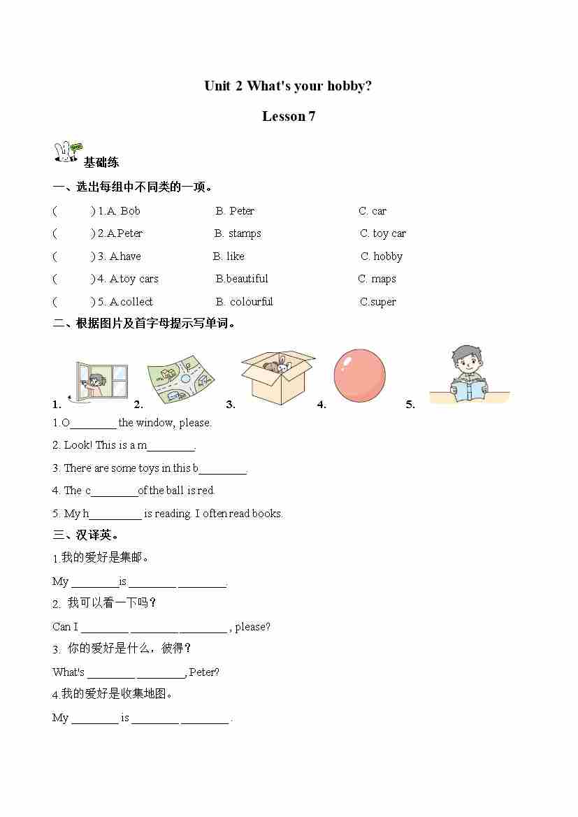Unit 2 Lesson 7(分层作业)英语人教精通版六年级上册