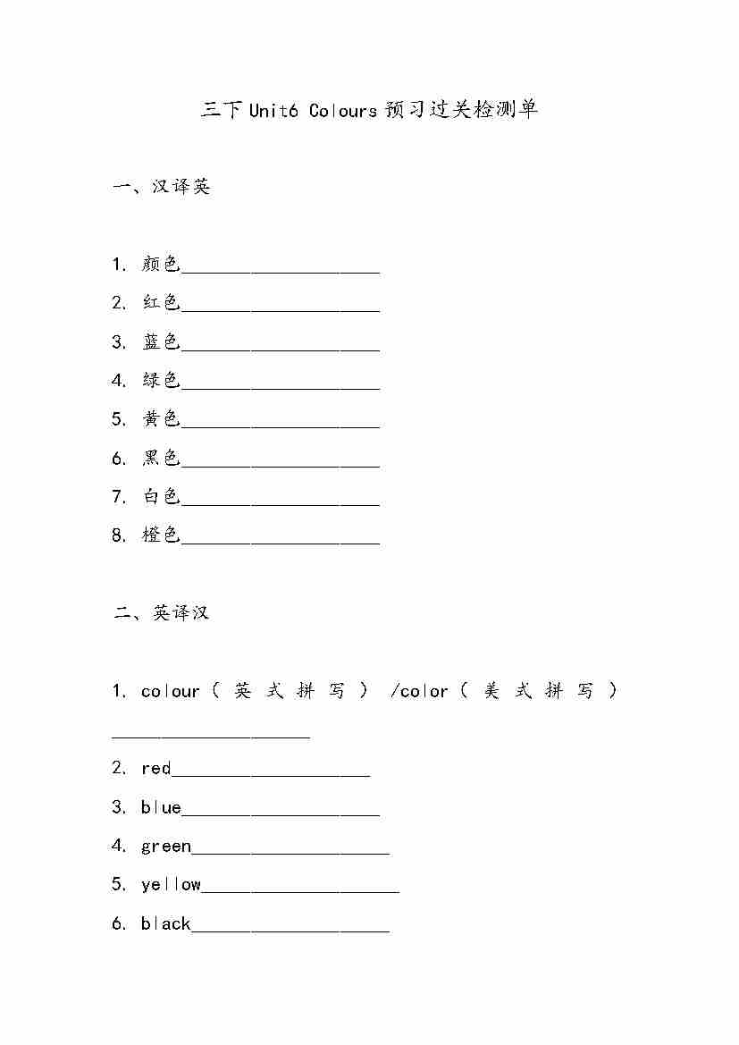 Unit6 Colours(同步练) 人教精通版(2024)英语三年级下册