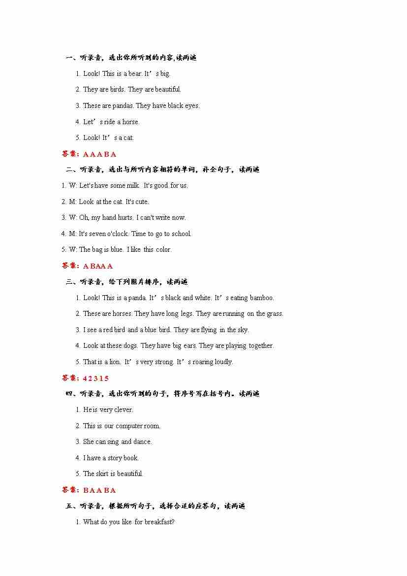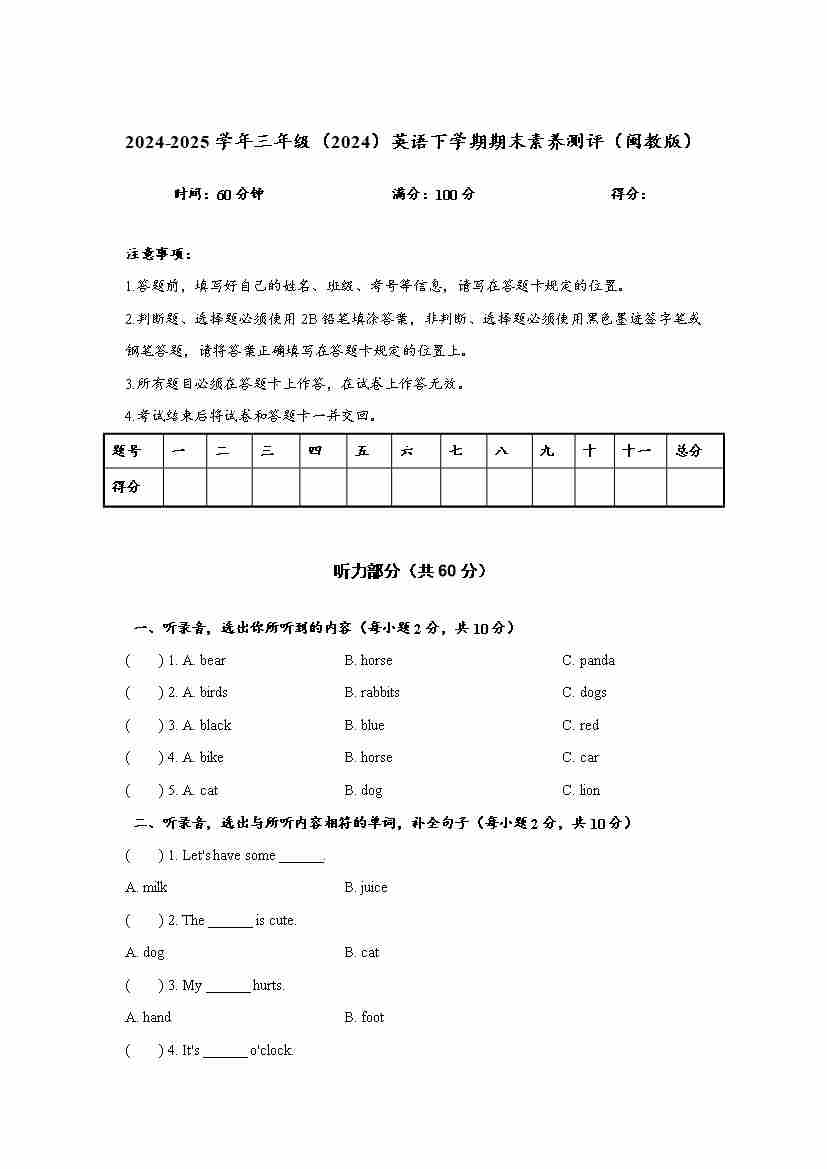 三下英语闽教版期末 (试题)听力音频