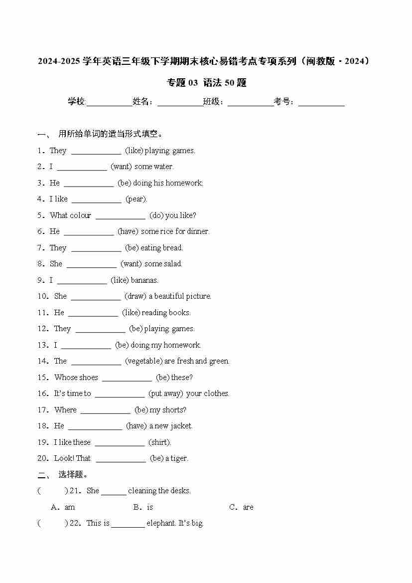 专题03 语法50题