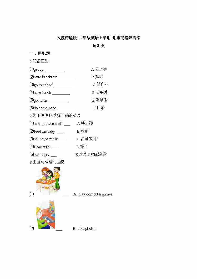 【词汇类】人教精通版 六年级英语上学期 期末易错题专练(含答案)