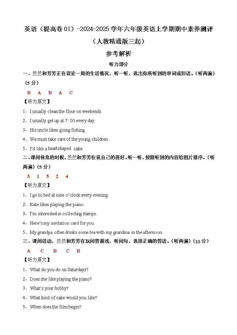 人教精通版英语(提高卷01)(参考解析)
