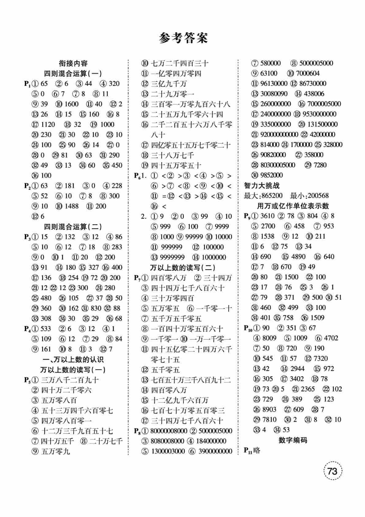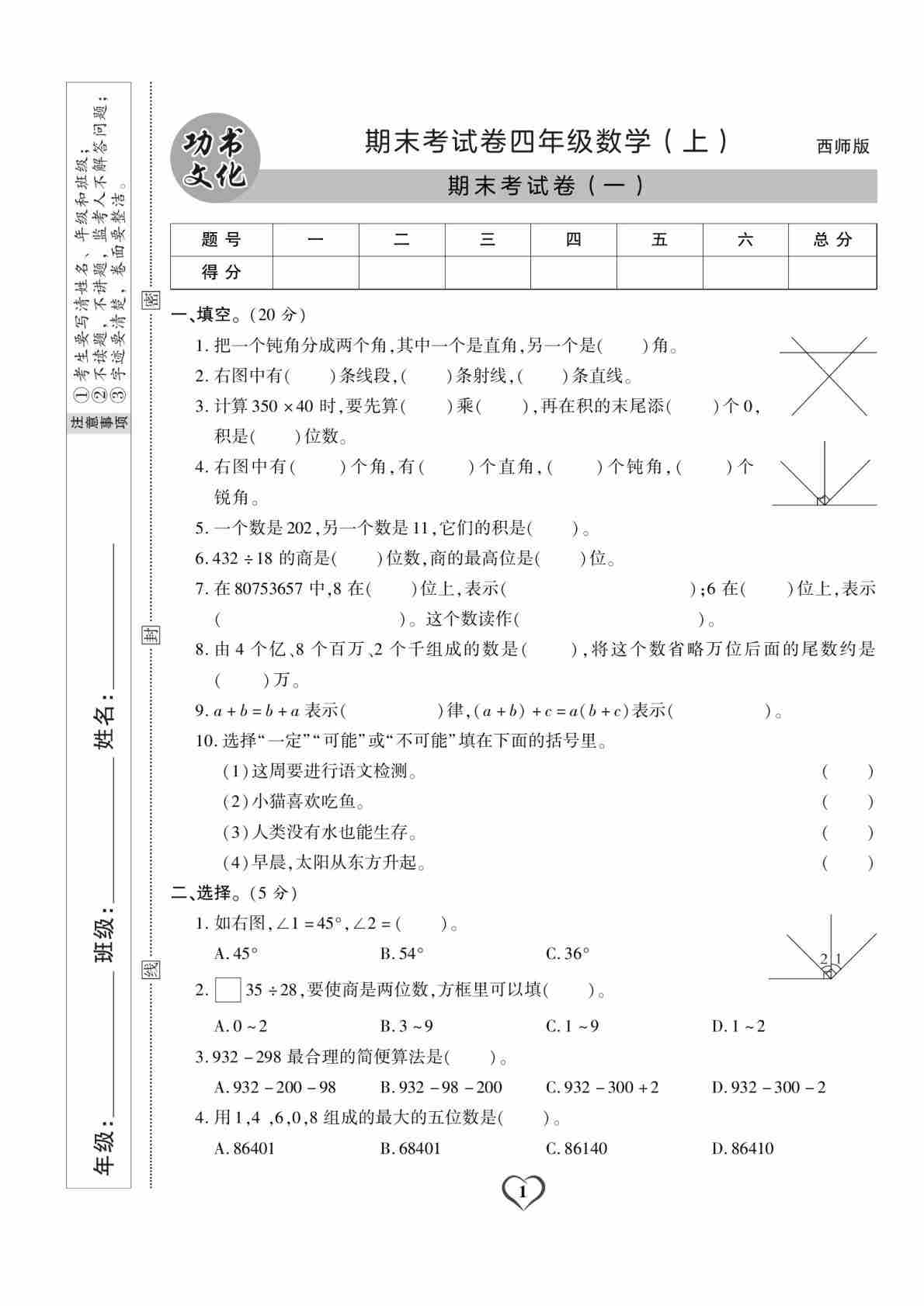 四上西师版数学【试卷《课堂练习》卷+答案】