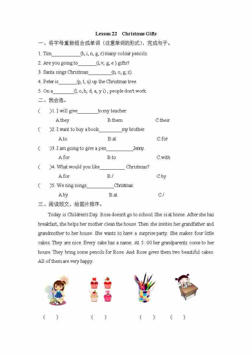 (三起)冀教版六年级英语上册Lesson 22练习题及答案
