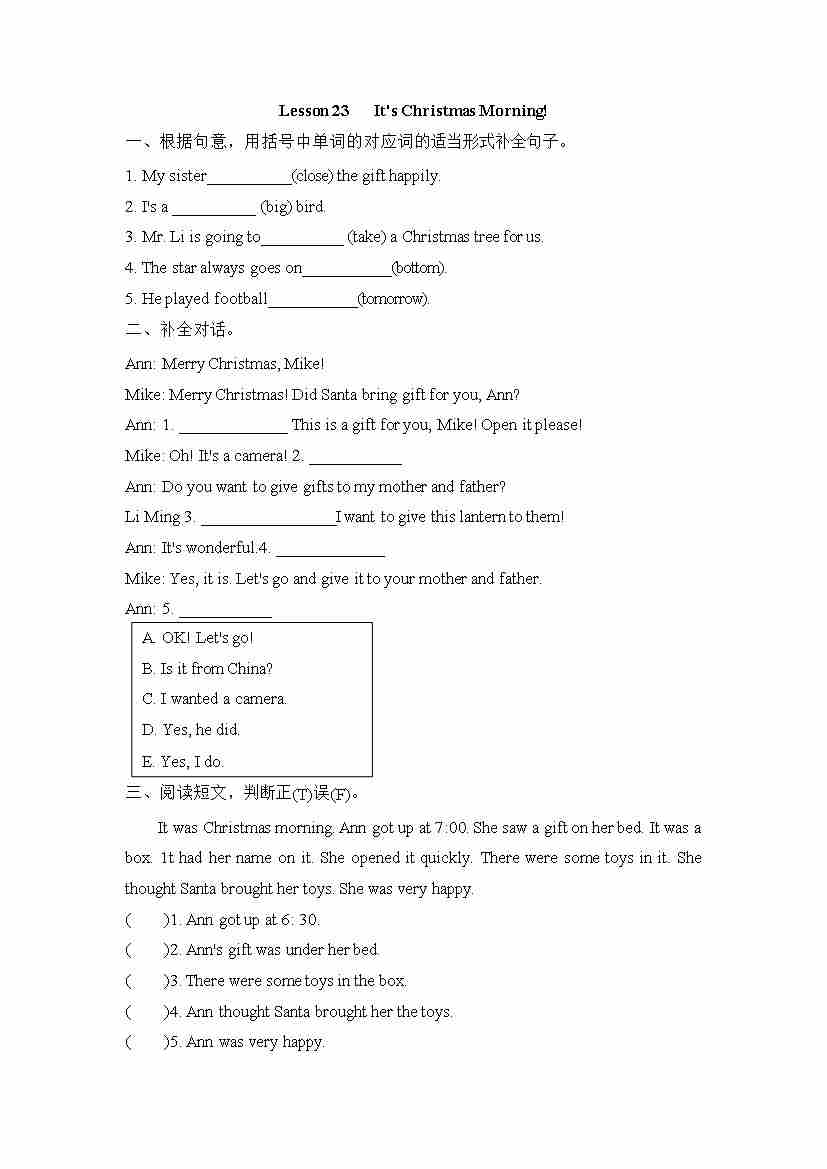 (三起)冀教版六年级英语上册Lesson 23练习题及答案