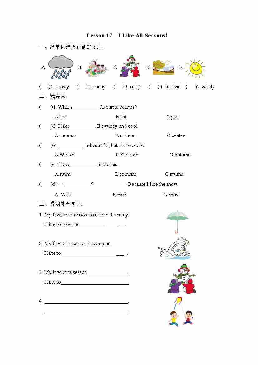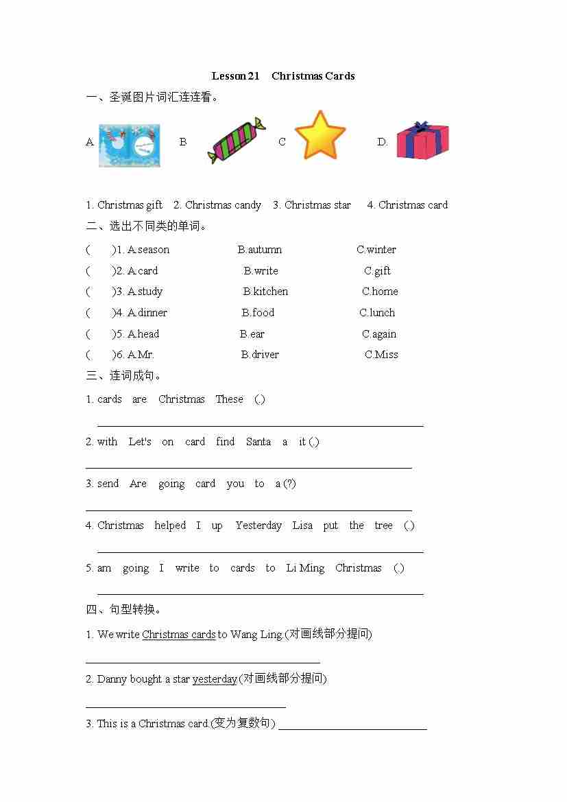 (三起)冀教版六年级英语上册Lesson21练习题及答案